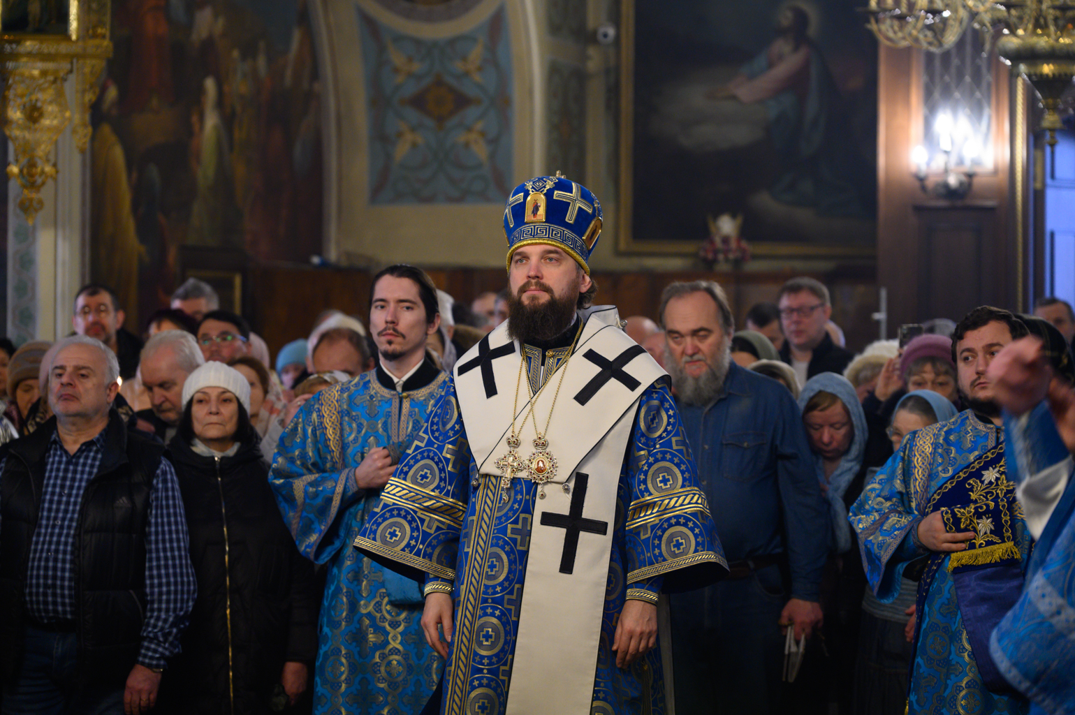 Его Высокопреосвященству сослужили: благочинный храмов Троицкого округа города Москвы, настоятель храма иконы Божией Матери «Нечаянная Радость» в Марьиной Роще города Москвы протоиерей Георгий Климов; настоятель храма преподобного Сергия Радонежского в Бибиреве иерей Павел Симонов; и.о. настоятеля храма святителя Макария Московского и Коломенского в Бутырском иерей Никита Иванов, и.о. настоятеля храма святых равноапостольных Мефодия и Кирилла в Ростокине иерей Александр Бриленков; и.о. руководителя секретариата Северо-Восточного викариатства иерей Сергий Бычков, а также клир храма — иерей Дионисий Мухин и иерей Николай Гуторов.