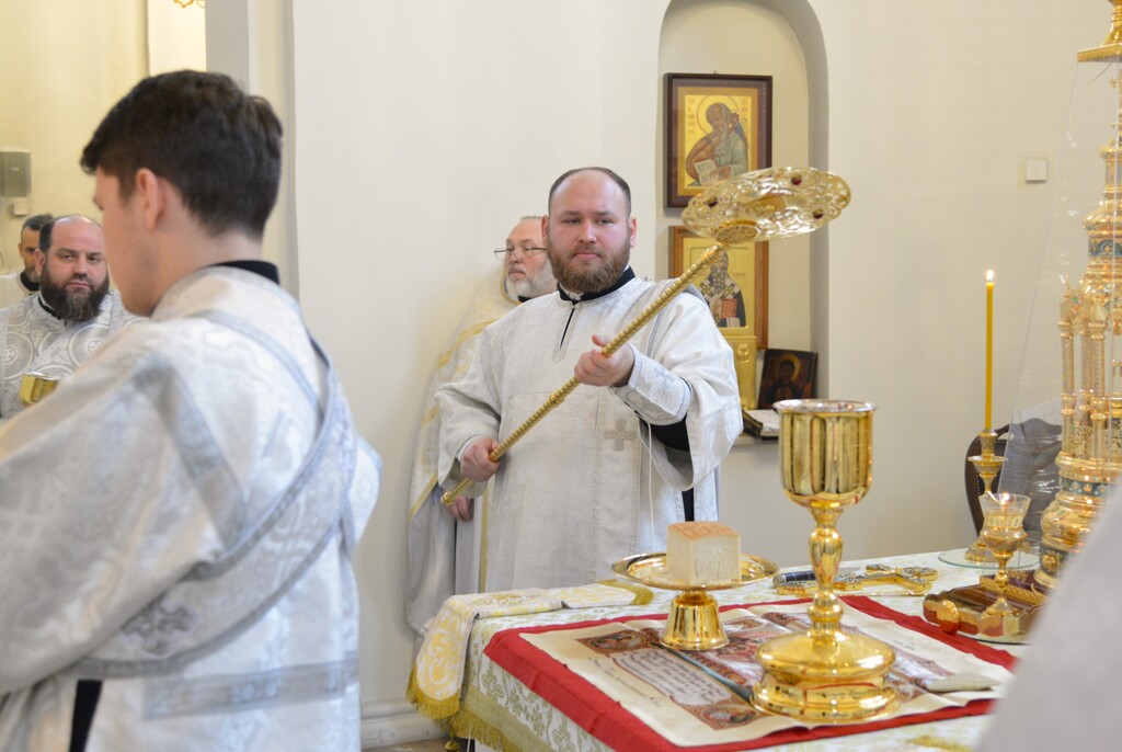 Проповедь по запричастном стихе произнес клирик храма иерей Григорий Шинов.
