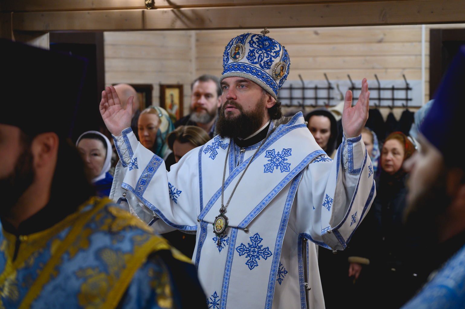 Затем владыка Арсений передал пастве Первосвятительское благословение и поздравление Святейшего Патриарха Московского и всея Руси Кирилла, поздравил всех с престольным праздником и обратился к молящимся с архипастырским словом.
