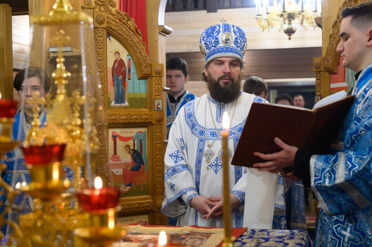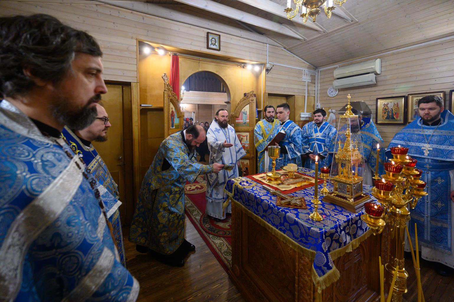 Диаконский чин возглавил протодиакон Василий Куфлик, клирик храма Тихвинской иконы Божией Матери, Патриаршего подворья в Алексеевском города Москвы.
