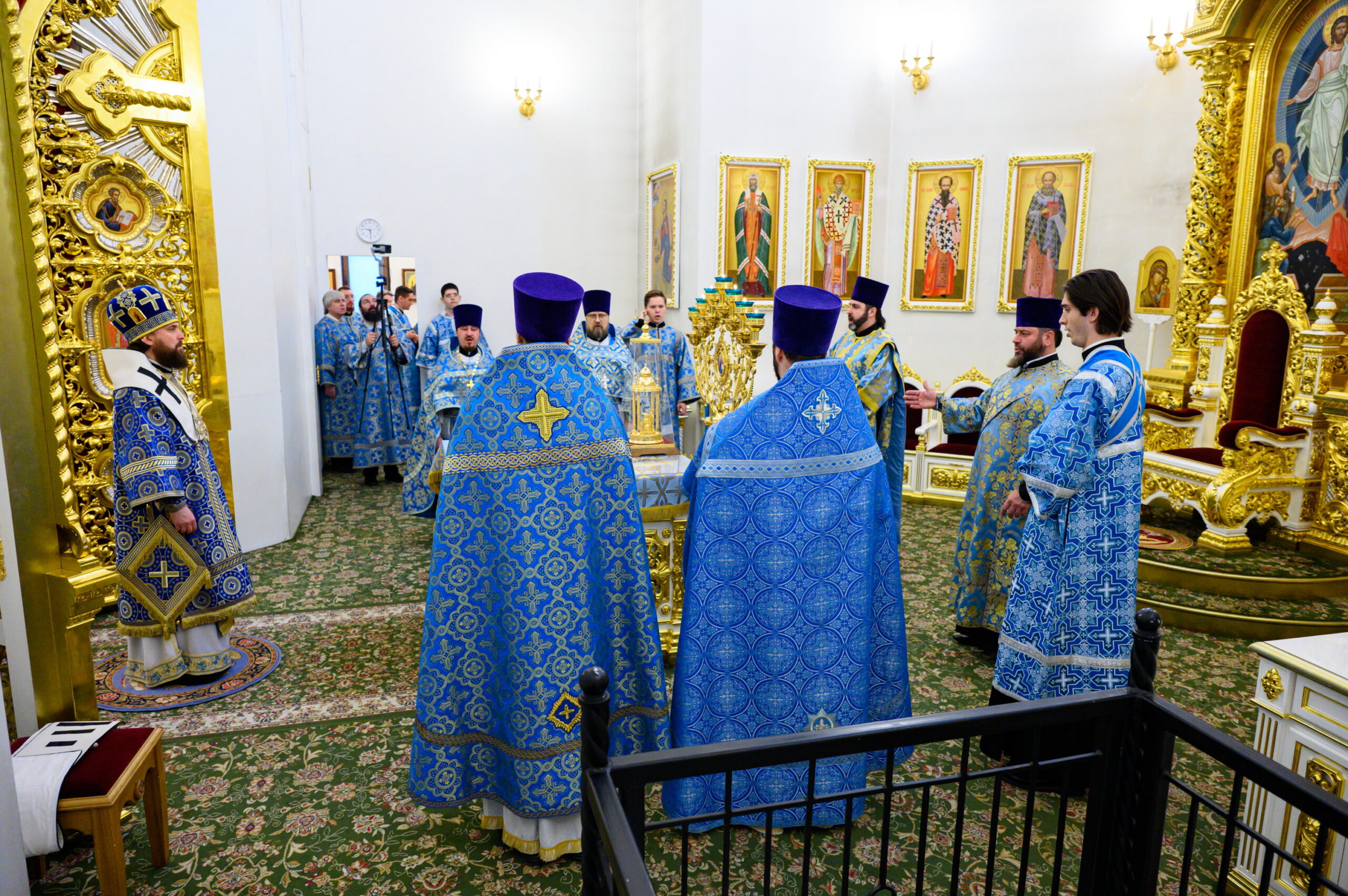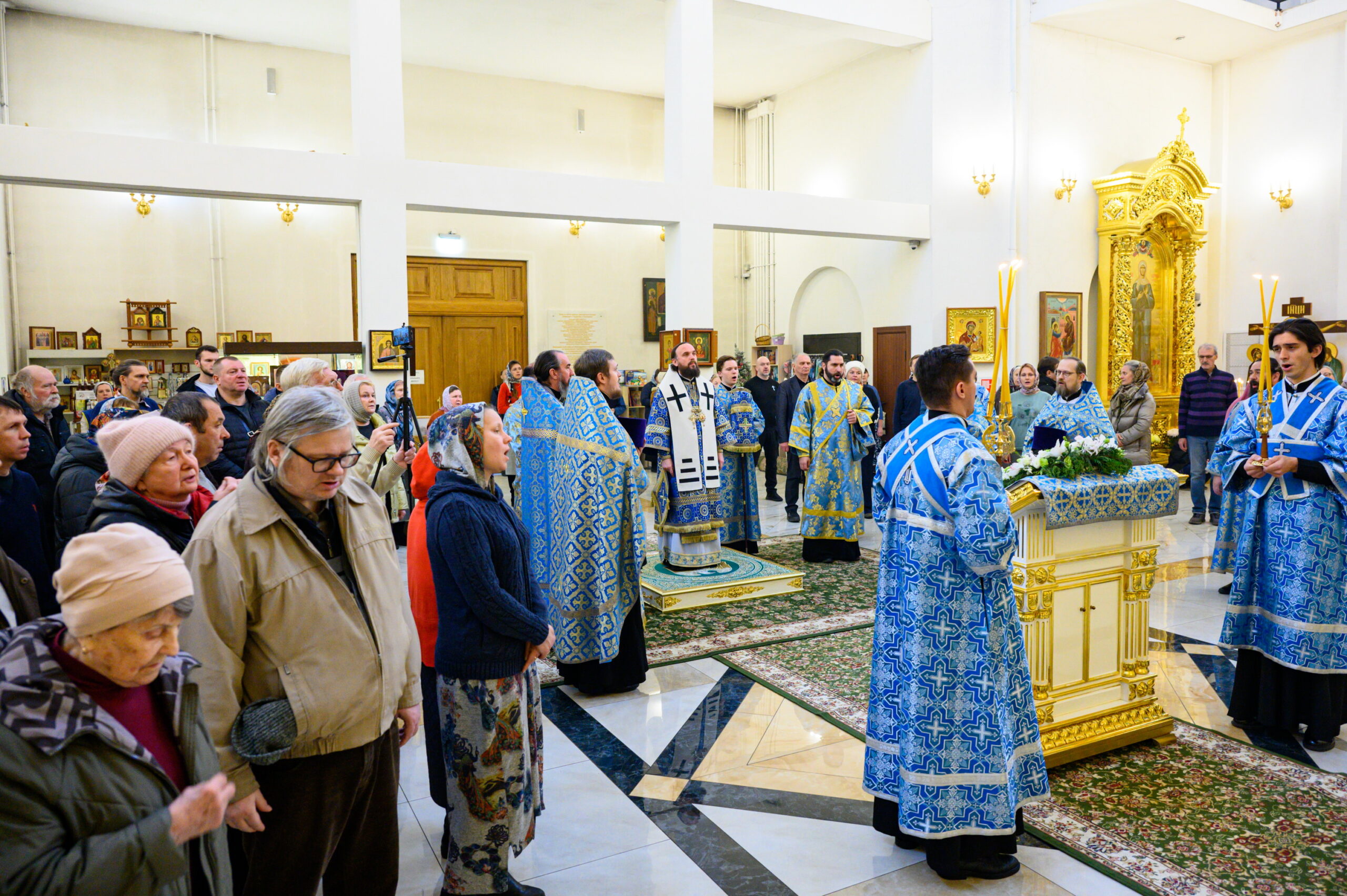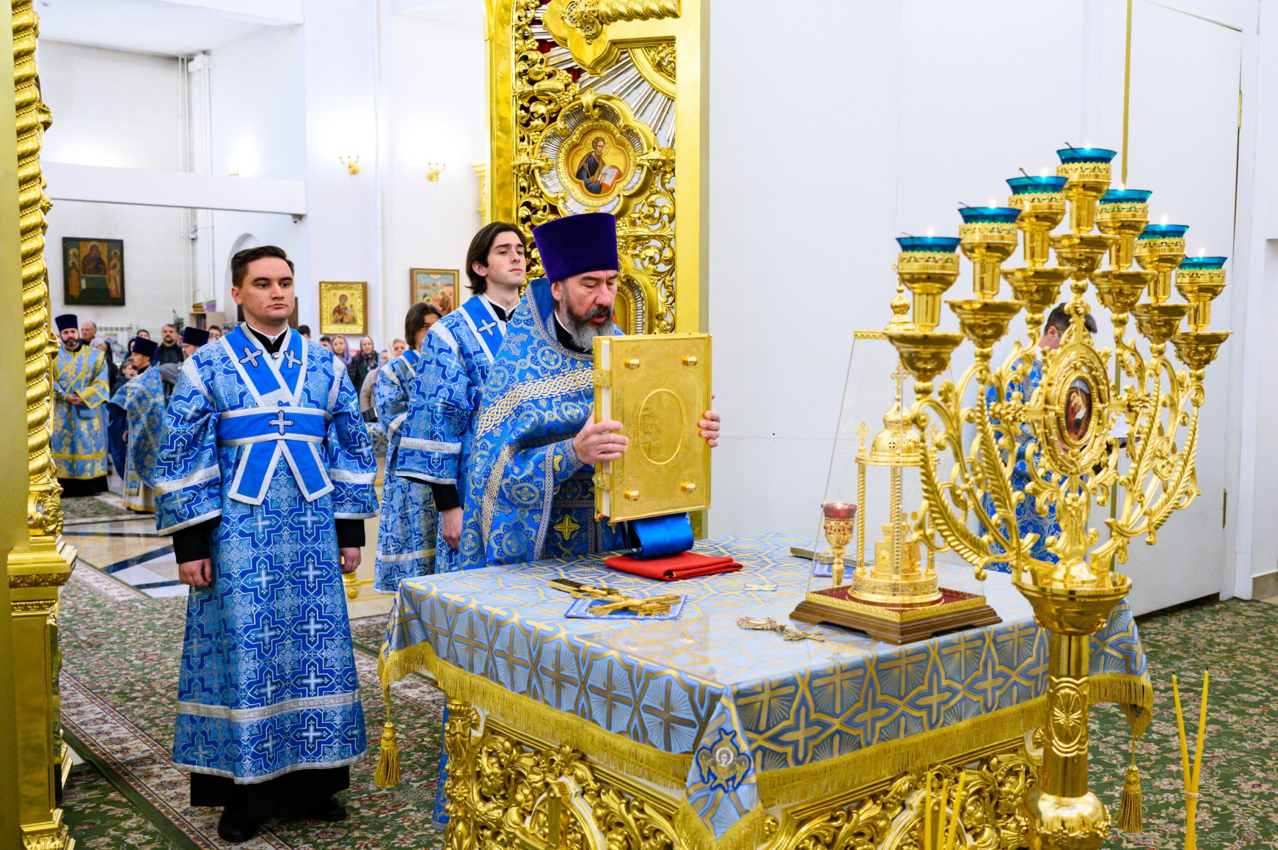 Его Высокопреосвященству сослужили: благочинный храмов Троицкого округа города Москвы, настоятель храма иконы Божией Матери «Нечаянная Радость» в Марьиной Роще протоиерей Георгий Климов; и.о. настоятеля храма святых равноапостольных Мефодия и Кирилла в Ростокине иерей Александр Бриленков, и.о. руководителя секретариата Северо-Восточного викариатства иерей Сергий Бычков, а также клирики храма святых равноапостольных Мефодия и Кирилла в Ростокине – иерей Алексий Арефьев и иерей Илия Козливсков.