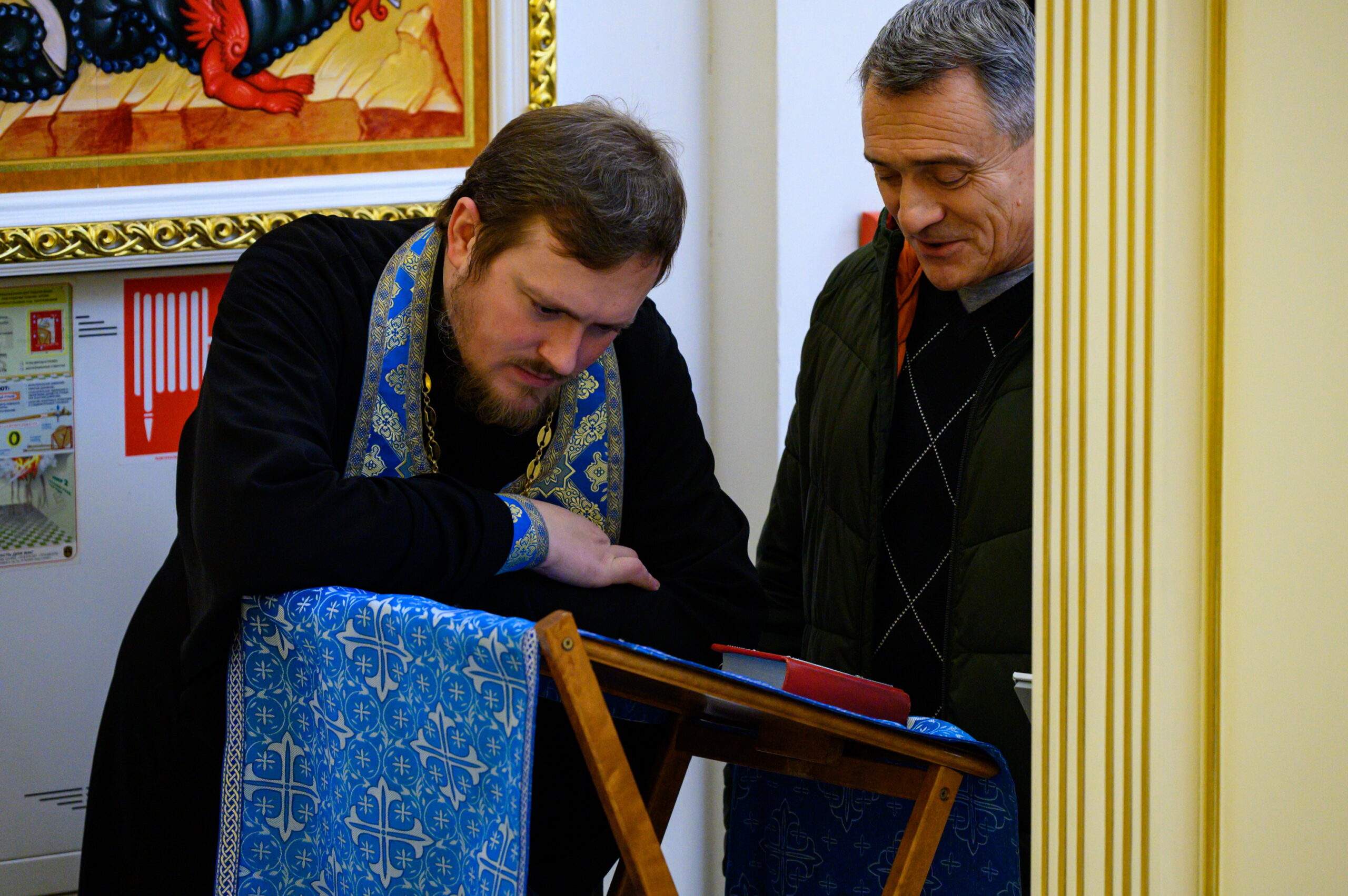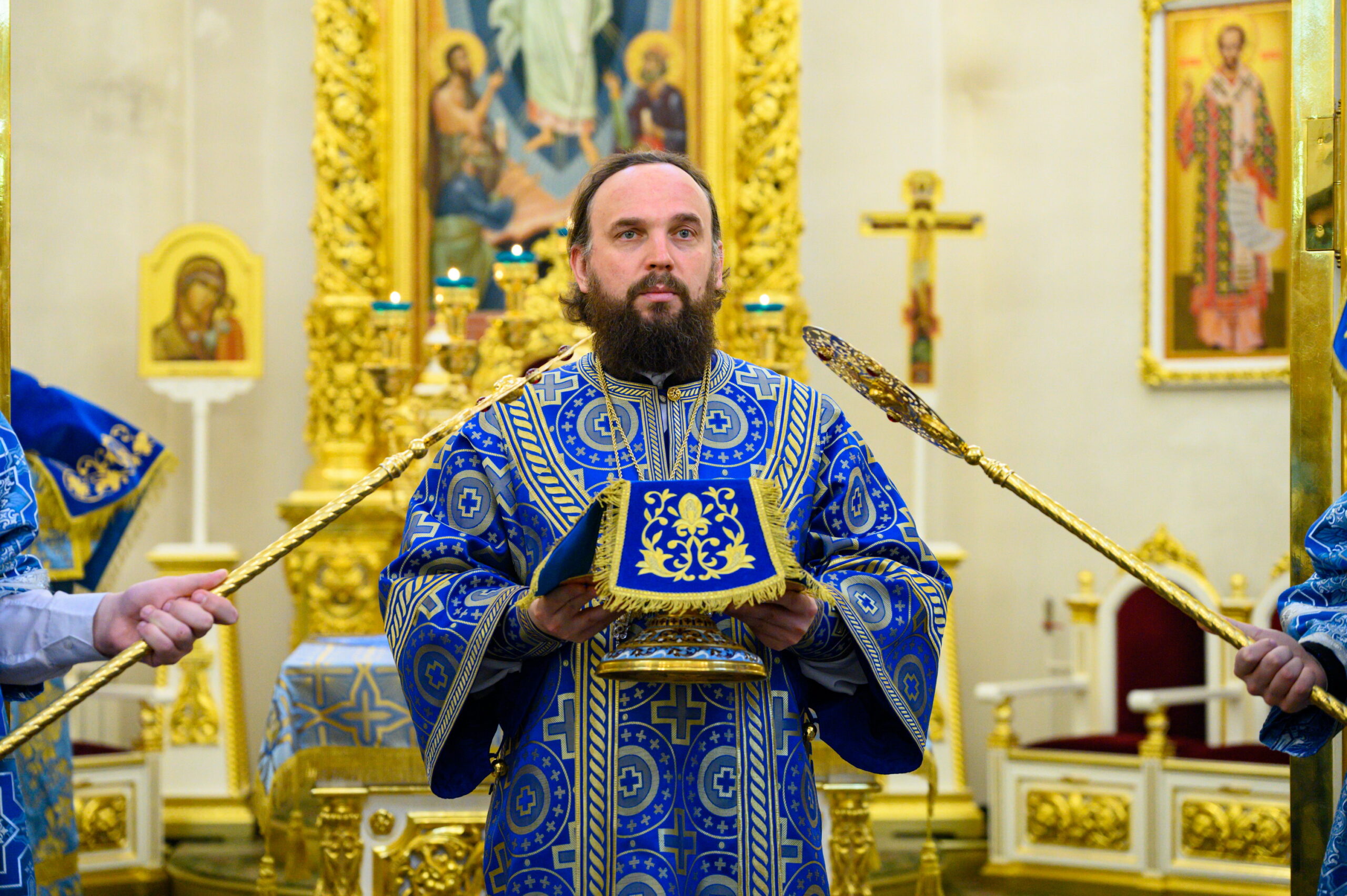 Затем и.о. настоятеля храма иерей Александр Бриленков поблагодарил владыку за радость совместного евхаристического общения и преподнес ему в дар на молитвенную память образ Пресвятой Богородицы «Скоропослушница».