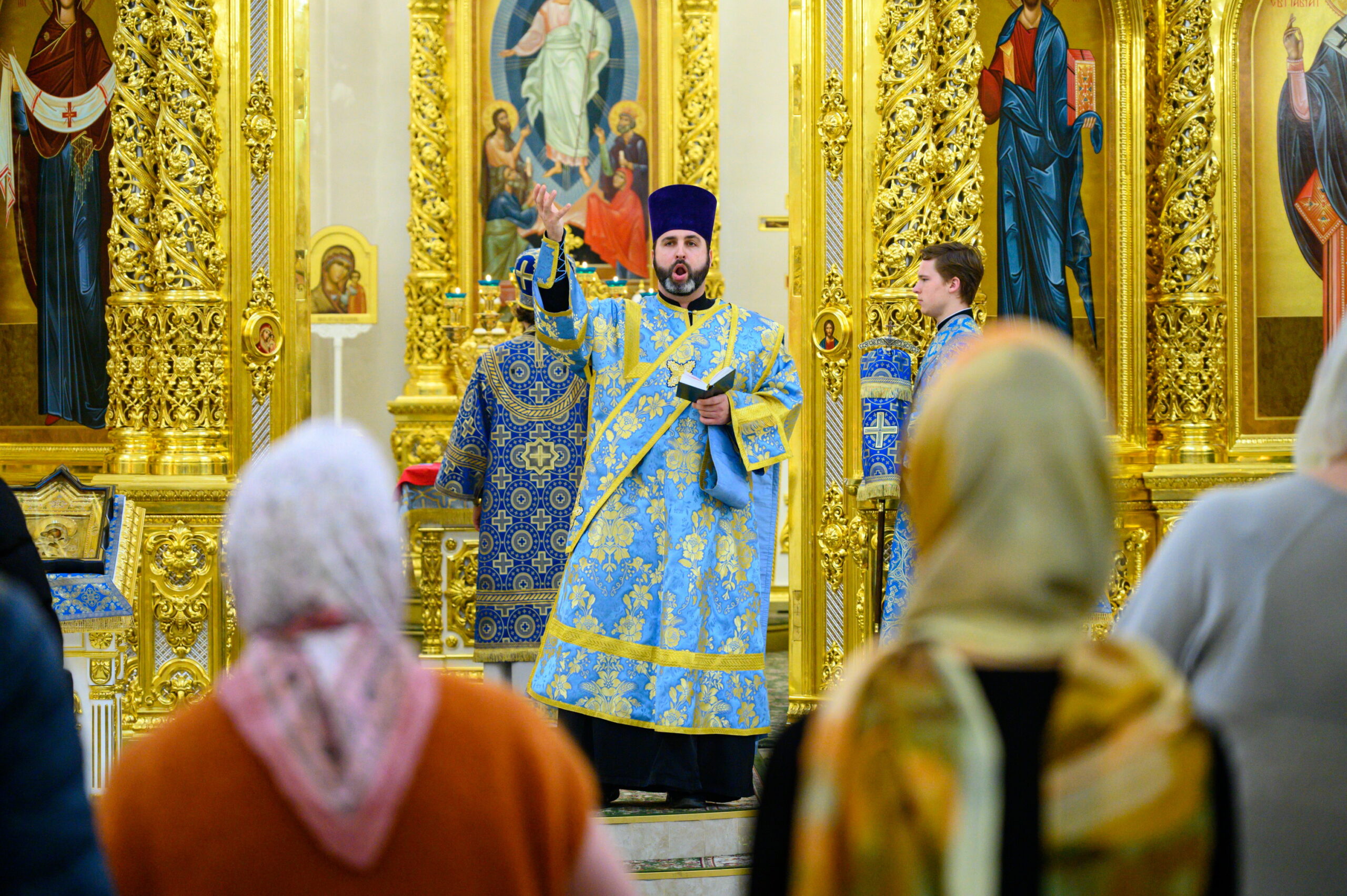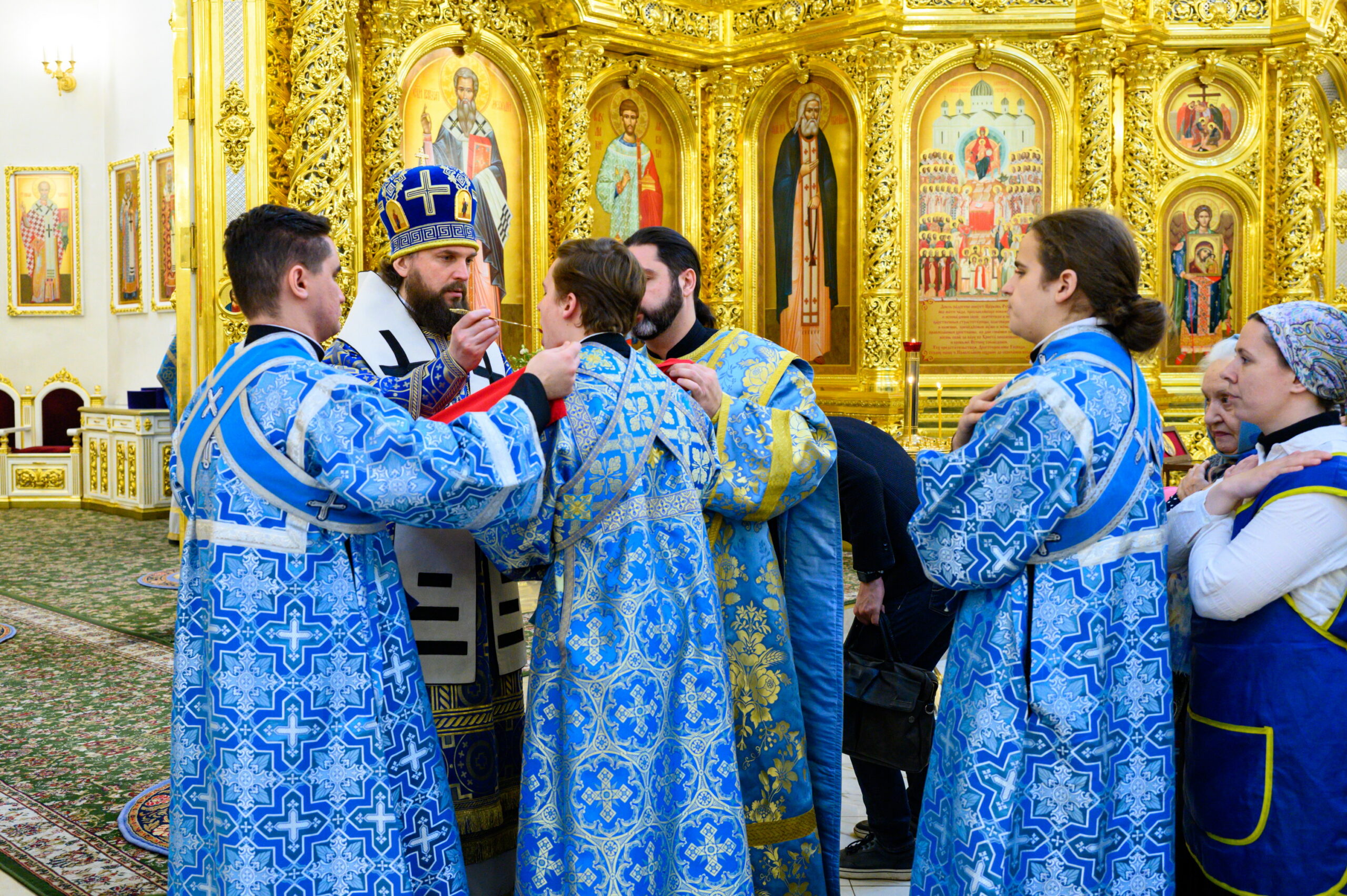 Диаконский чин возглавил протодиакон Василий Куфлик, клирик храма Тихвинской иконы Божией Матери, Патриаршего подворья в Алексеевском города Москвы.