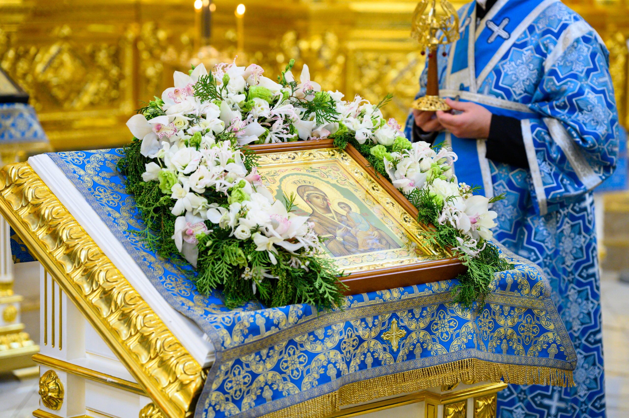 После отпуста духовенство во главе с архипастырем совершили величание перед чтимым образом Пресвятой Богородицы.