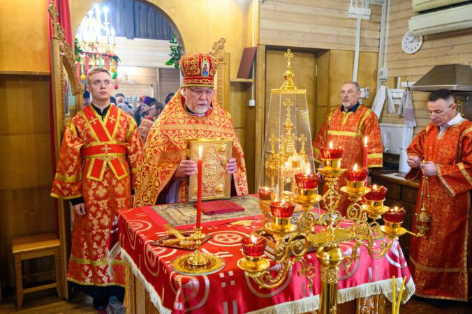 Митрополит Арсений совершил Божественную Литургию во временном храме святых Жен-Мироносиц Патриаршего подворья храма иконы Божией Матери «Отрада и Утешение» в Ярославском