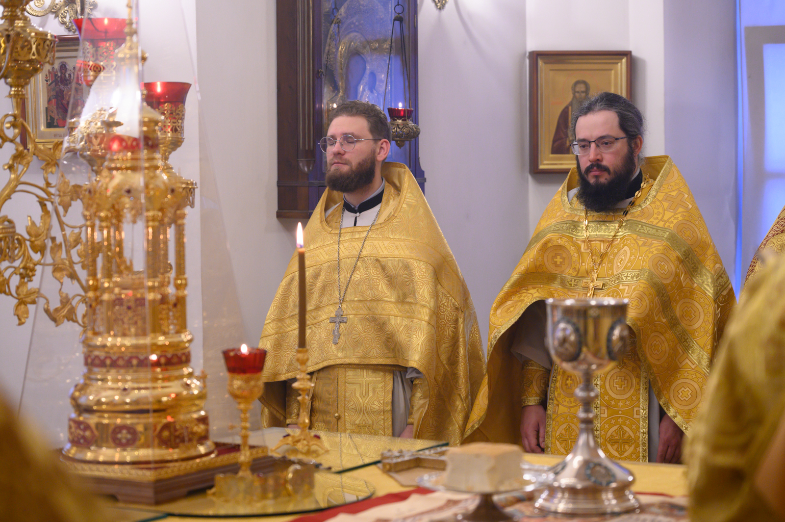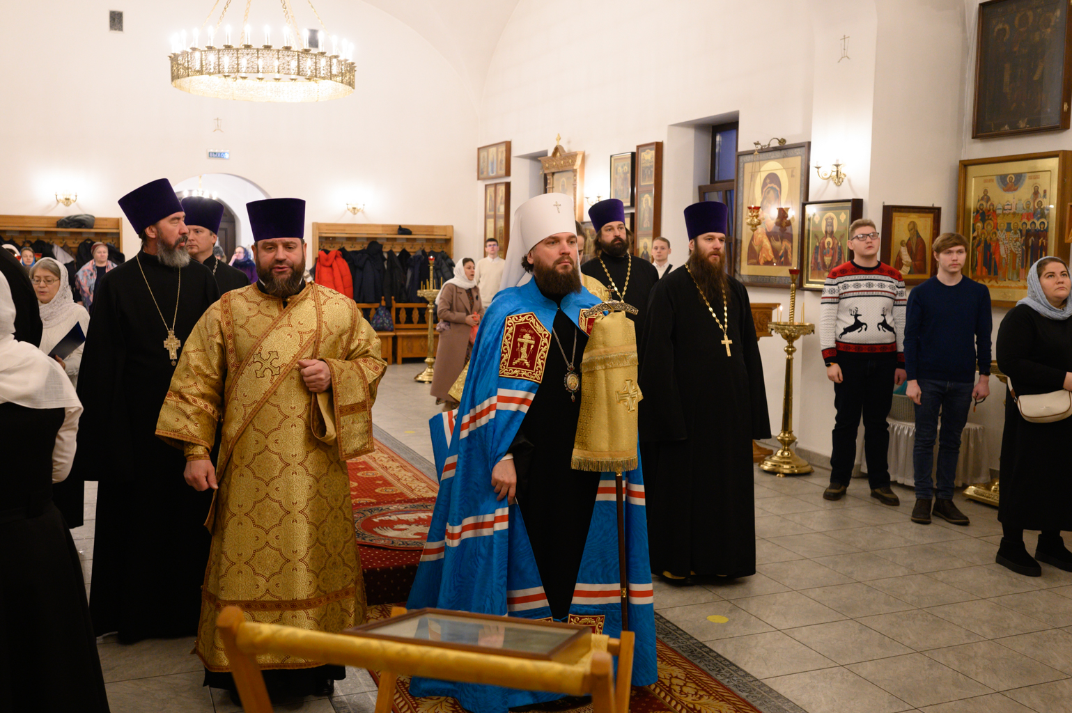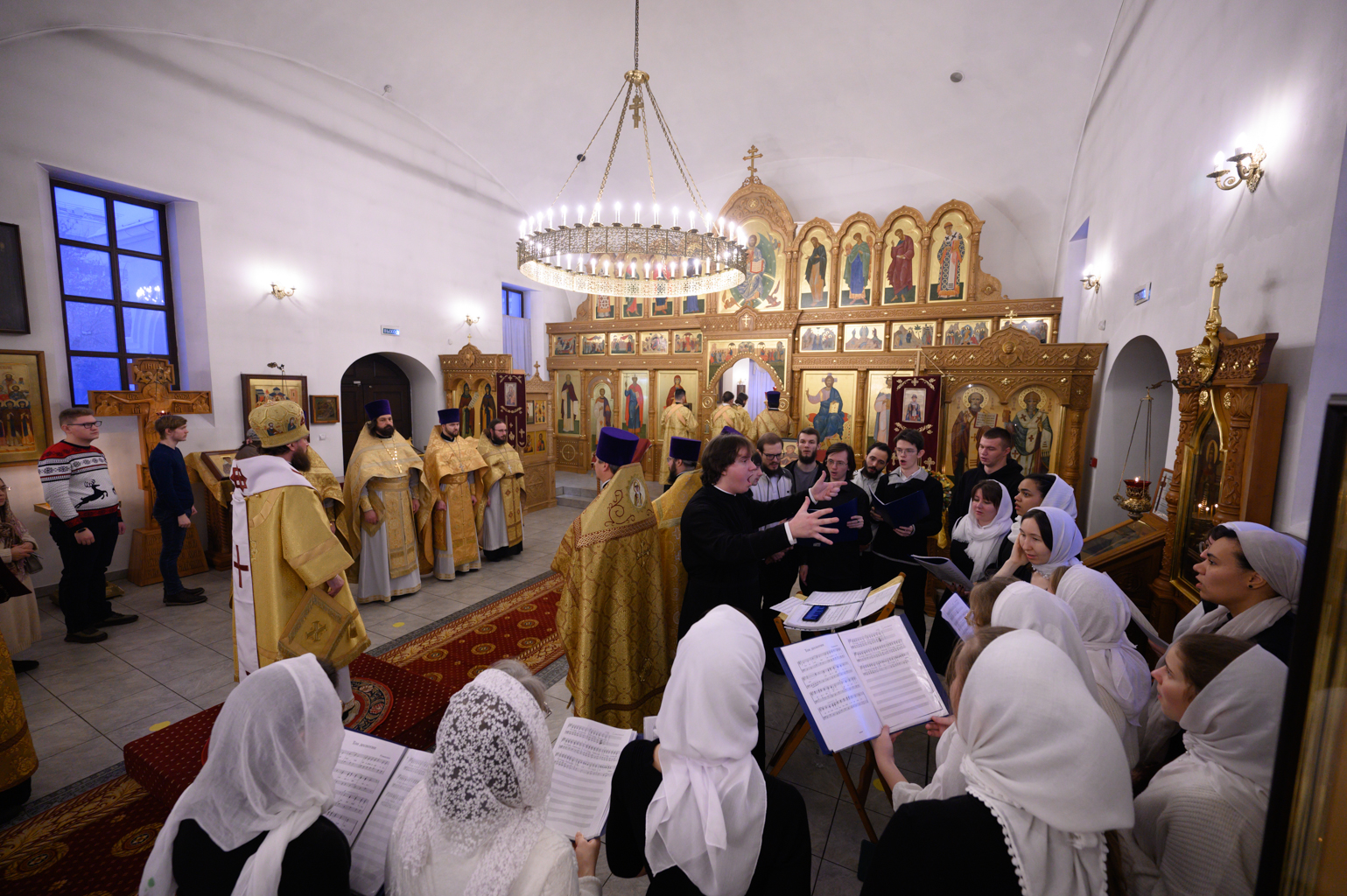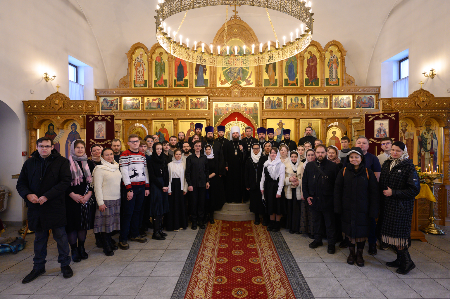 Его Высокопреосвященству сослужили: благочинный храмов Троицкого округа города Москвы, настоятель храма иконы Божией Матери «Нечаянная радость» в Марьиной роще города Москвы протоиерей Георгий Климов; председатель Отдела по делам молодежи Московской епархии протоиерей Кирилл Сладков; и.о. настоятеля храма святой равноапостольной великой княгини Ольги в Останкине, ответственный за молодежное служение в Северо-Восточном викариатстве иерей Иоанн Янушек; настоятель храма преподобного Серафима Cаровского в Раеве протоиерей Алексий Яковлев; и.о. настоятеля храма святителя Макария (Невского), митрополита Московского и Коломенского, Патриаршего подворья в Бутырском иерей Никита Иванов; и.о. руководителя секретариата Северо-Восточного викариатства иерей Сергий Бычков; клирик храма иконы Божией Матери «Неопалимая Купина» в Отрадном иерей Кирилл Приходько, а также клирик храма святой равноапостольной великой княгини Ольги в Останкине иерей Евгений Сибилев.
