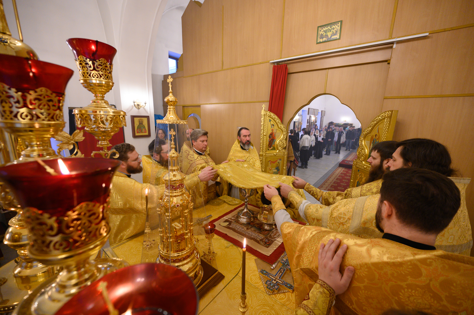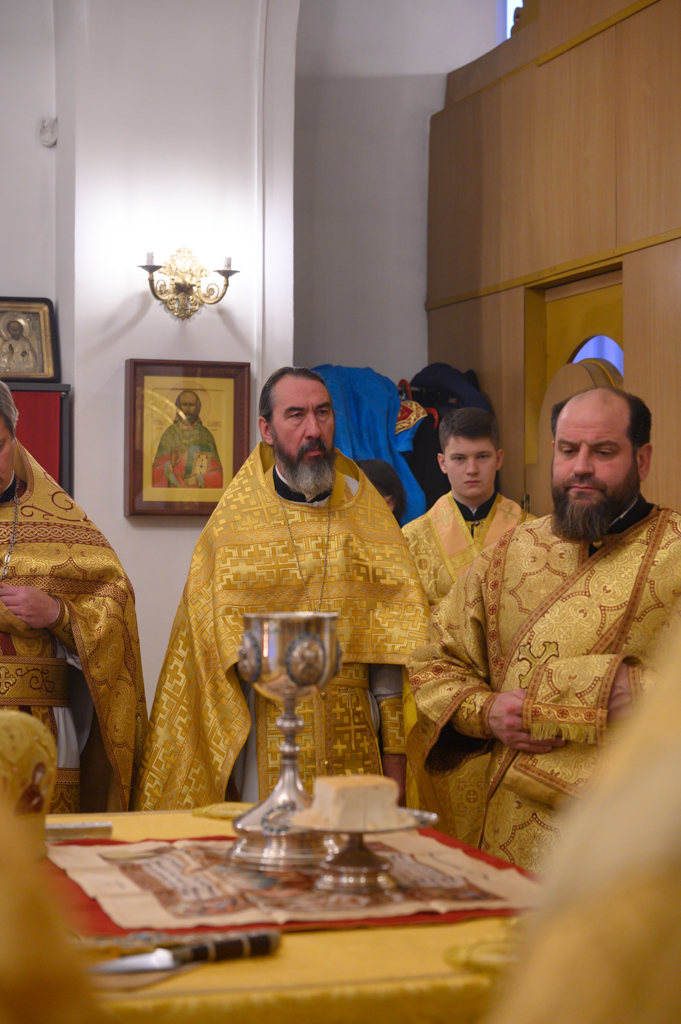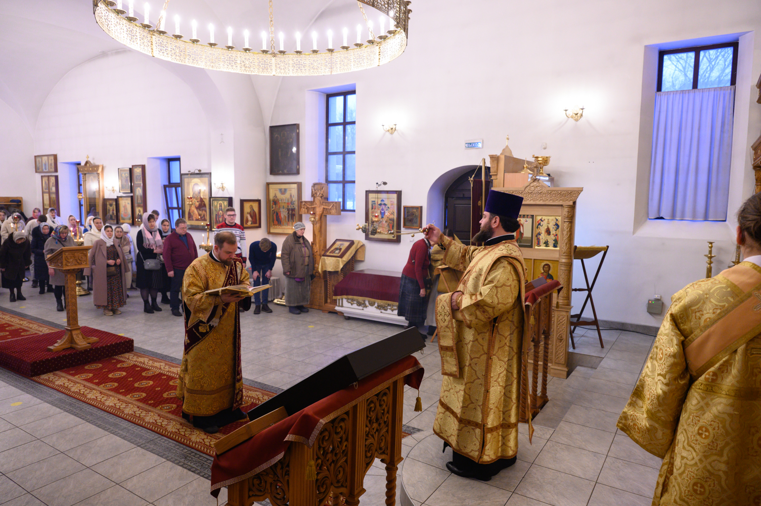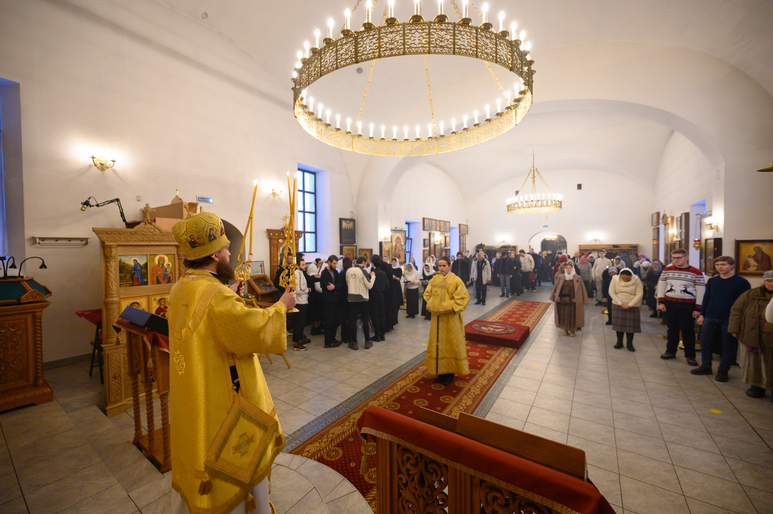 Его Высокопреосвященству сослужили: благочинный храмов Троицкого округа города Москвы, настоятель храма иконы Божией Матери «Нечаянная радость» в Марьиной роще города Москвы протоиерей Георгий Климов; председатель Отдела по делам молодежи Московской епархии протоиерей Кирилл Сладков; и.о. настоятеля храма святой равноапостольной великой княгини Ольги в Останкине, ответственный за молодежное служение в Северо-Восточном викариатстве иерей Иоанн Янушек; настоятель храма преподобного Серафима Cаровского в Раеве протоиерей Алексий Яковлев; и.о. настоятеля храма святителя Макария (Невского), митрополита Московского и Коломенского, Патриаршего подворья в Бутырском иерей Никита Иванов; и.о. руководителя секретариата Северо-Восточного викариатства иерей Сергий Бычков; клирик храма иконы Божией Матери «Неопалимая Купина» в Отрадном иерей Кирилл Приходько, а также клирик храма святой равноапостольной великой княгини Ольги в Останкине иерей Евгений Сибилев.