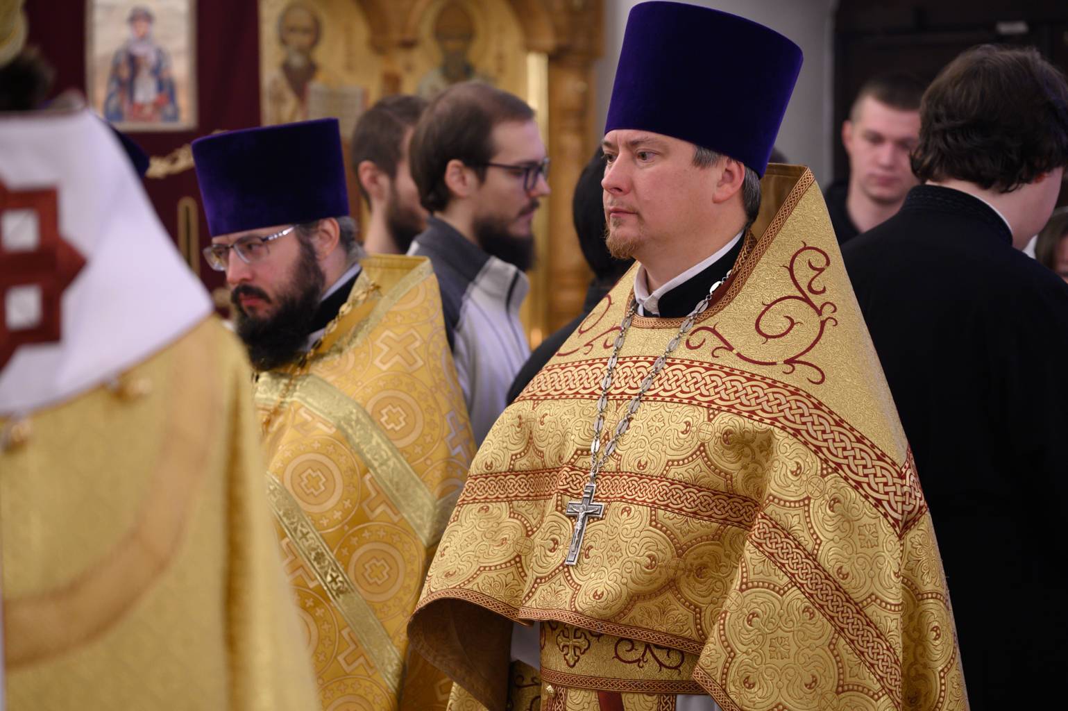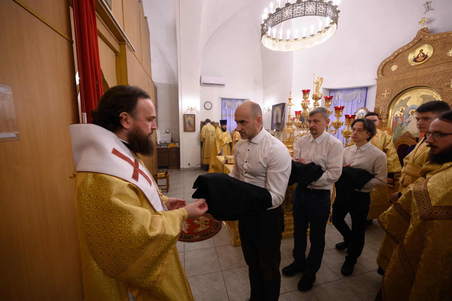 Диаконский чин возглавил протодиакон Василий Куфлик, клирик храма Тихвинской иконы Божией Матери, Патриаршего подворья в Алексеевском города Москвы.