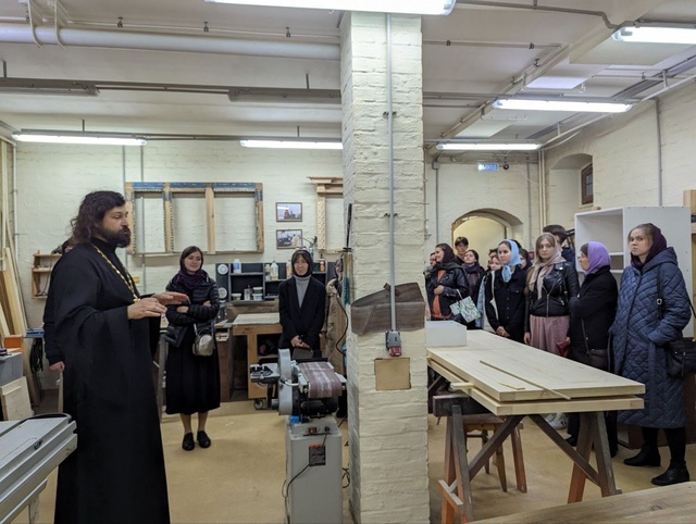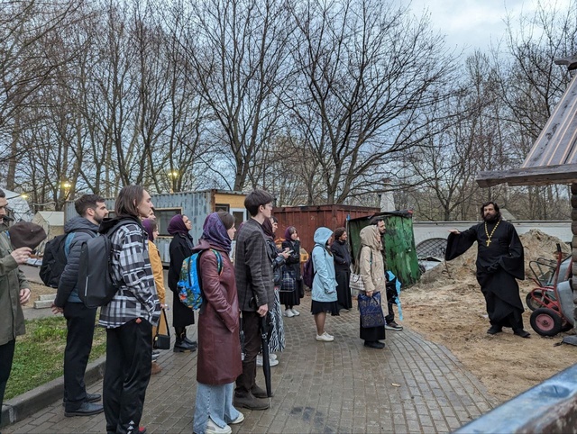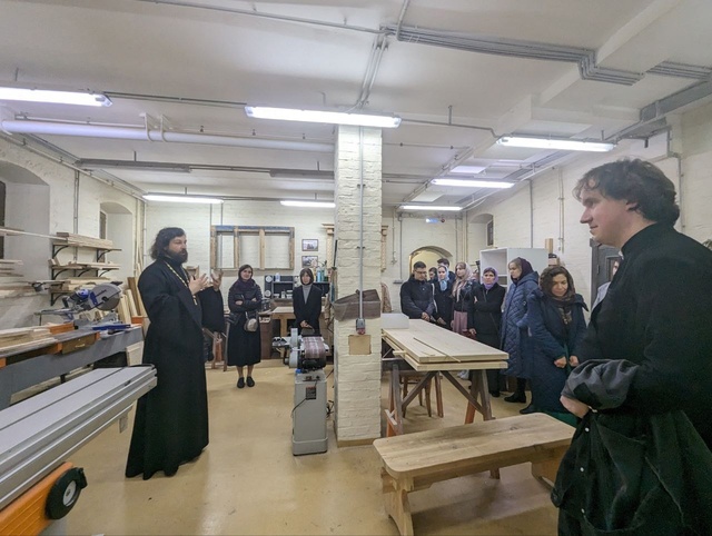 В конце богослужения настоятель обратился к прихожанам с проповедью, поблагодарил хор и всех собравшихся — за общую молитву. После, специально для молодежи, протоиерей Алексий провел экскурсию по территории храма, показал ребятам деревянные срубы, которые делает храмовая плотницкая школа, цех по изготовлению тактических носилок и мастерскую для резьбы по дереву.