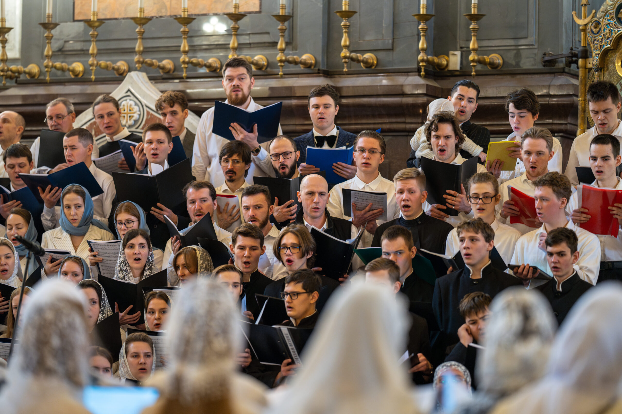 Богослужебные песнопения исполнил общемосковский молодежный хор под управлением Варвары Волковой. В состав хора входят более 250 представителей 18 добровольческих молодежных хоров викариатств г. Москвы, в том числе сводный молодежный хор Северо-Восточного Московского викариатства.