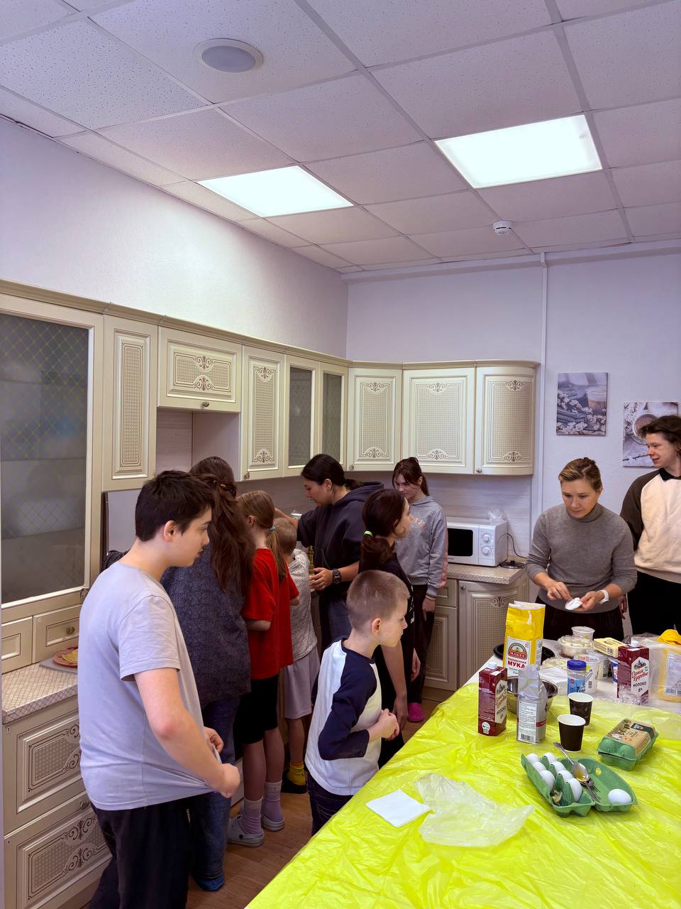 В ходе встречи были совместно приготовлены блины. Дети с удовольствием замешивали тесто, выпекали блины и угощали друг друга. Для ребят это стало возможностью получить новые навыки и провести время в тёплой, дружеской атмосфере.