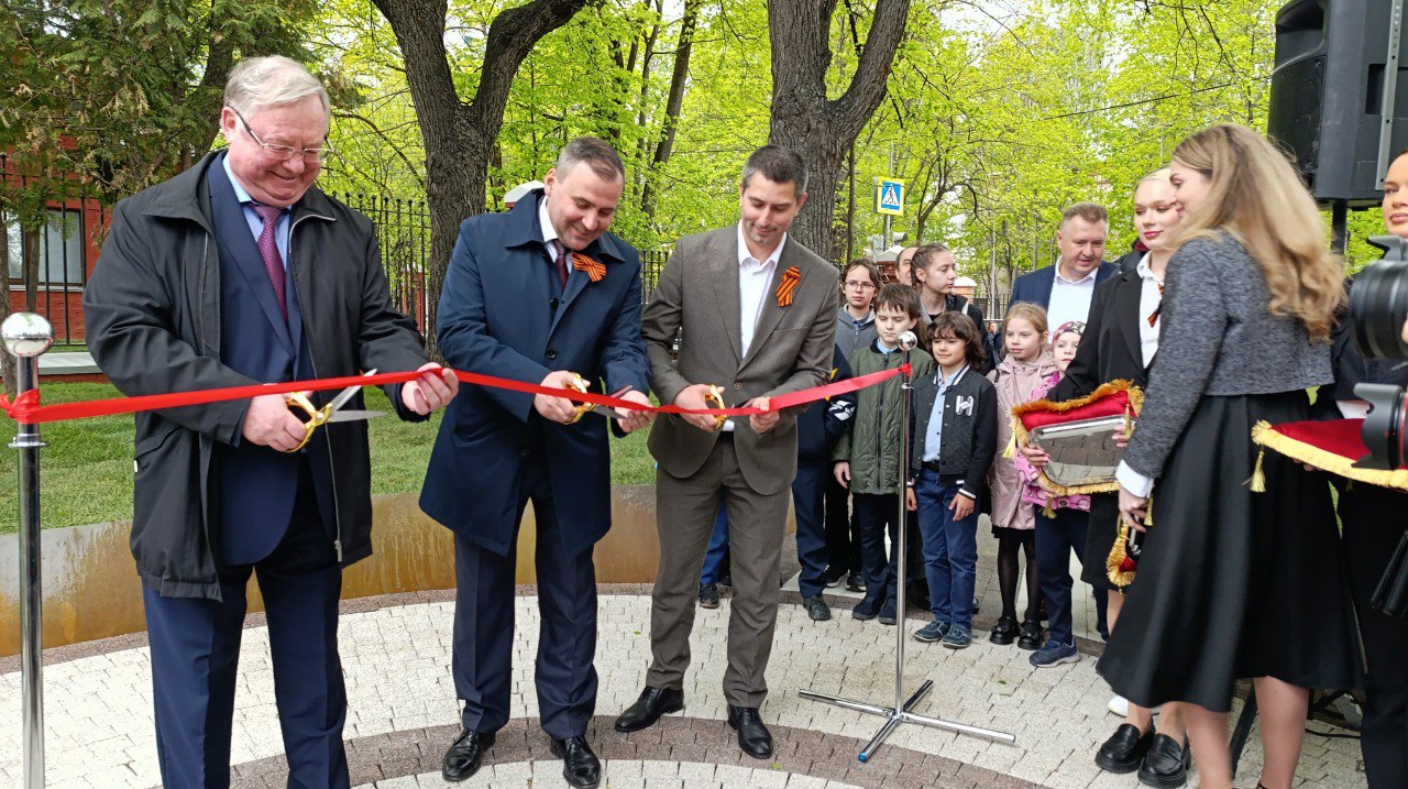 Сергей Степашин и Михаил Бузулуцкий разрезали красную ленту, открыв сквер для жителей города. А затем все гости мероприятия почтили память погибших работников завода «Водоприбор», возложив цветы к мемориальной стеле с именами 36 заводчан-фронтовиков.