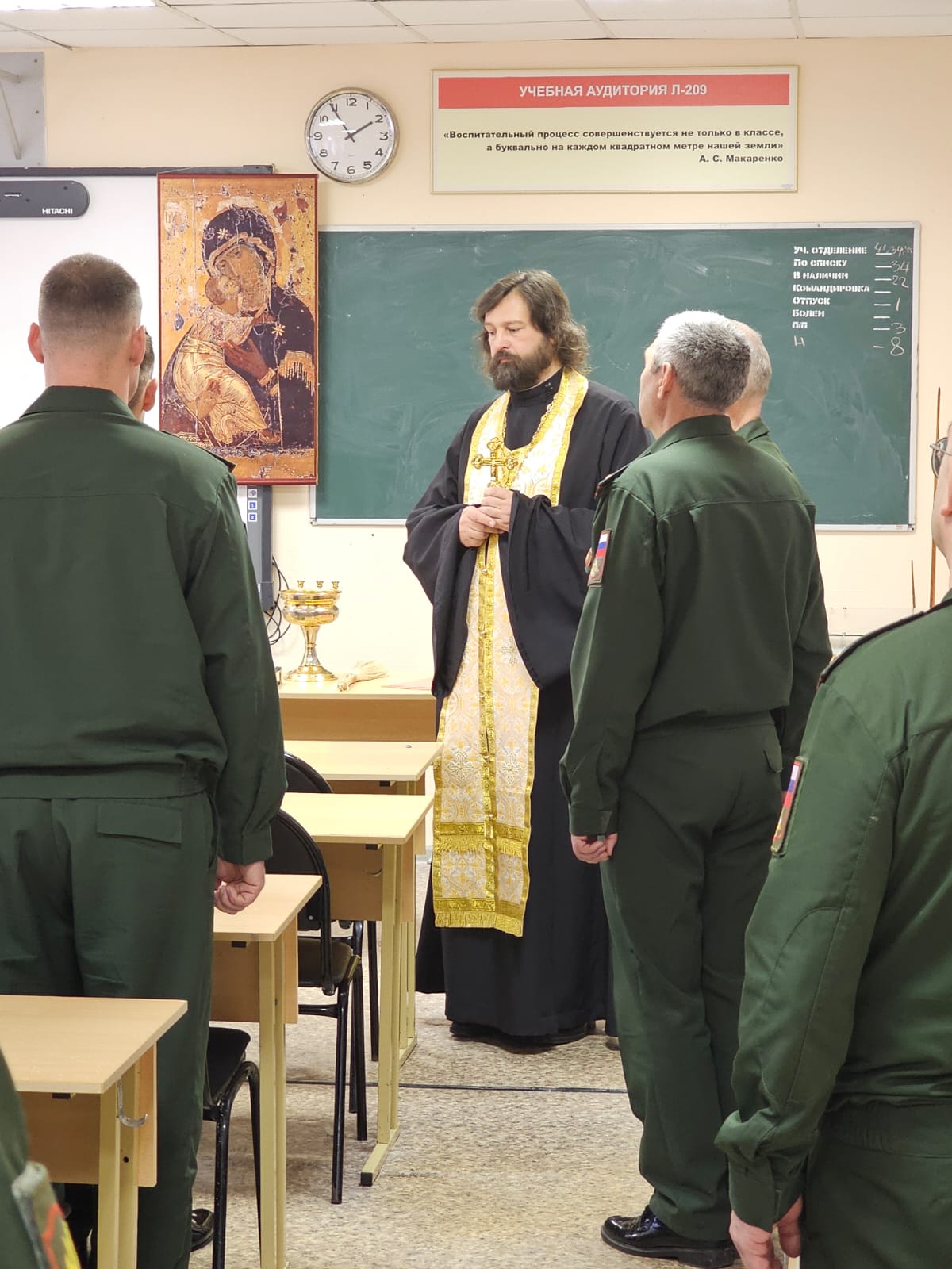 Здание вместило в себя несколько кафедр, в том числе кафедру военно-политической работы. По окончании освящения отец Алексий благословил и окропил преподавателей, офицеров и учащихся святой водой, а также обратился к ним с напутственным словом.