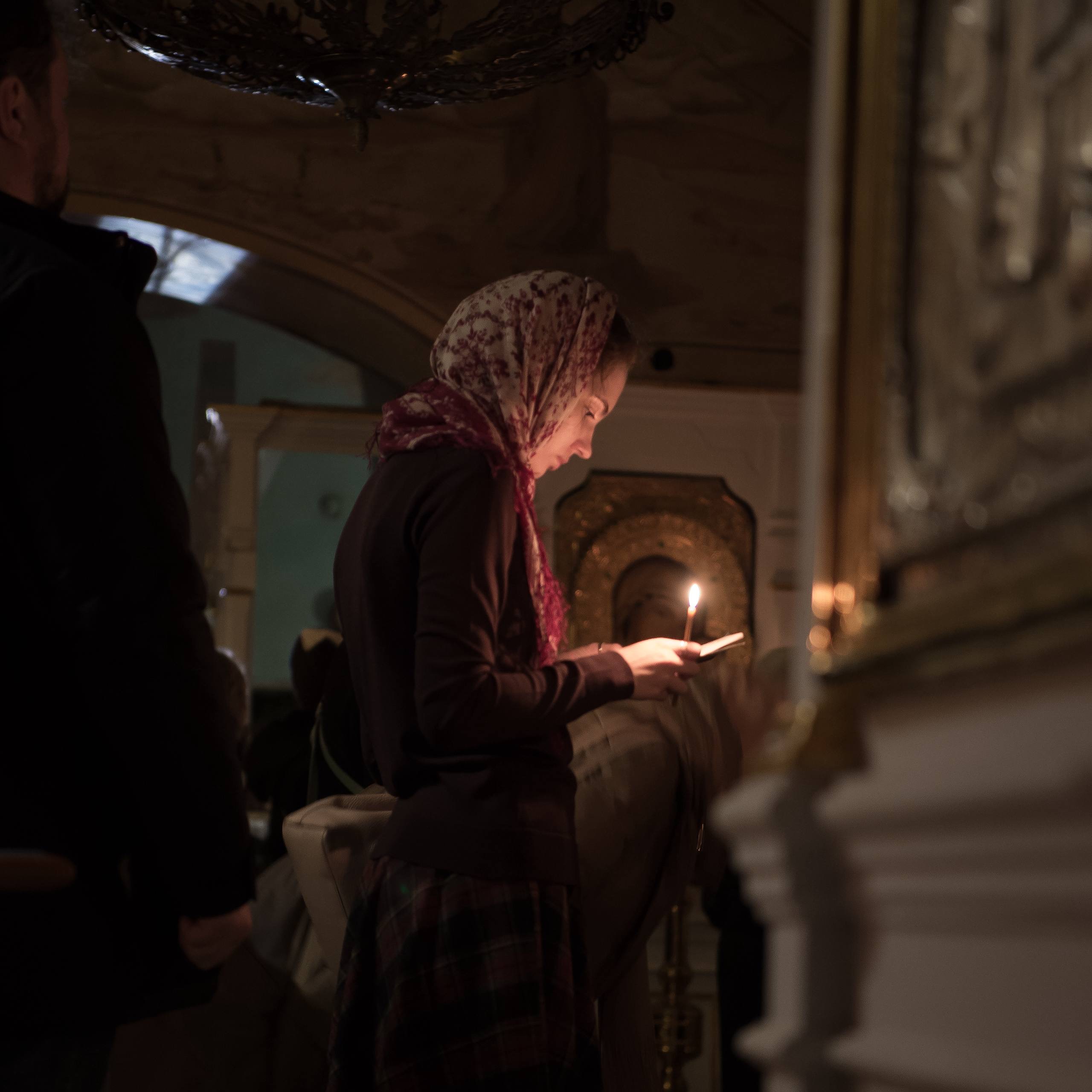 В первые дни Великого Поста для удобства пожилых прихожан, прихожан с детьми и прихожан с ограничениями по здоровью храма Положения Ризы Пресвятой Богородицы во Влахерне, в Леонове повечерие с чтением покаянного канона святого Андрея Критского совершалось не только вечером, но и в середине дня.