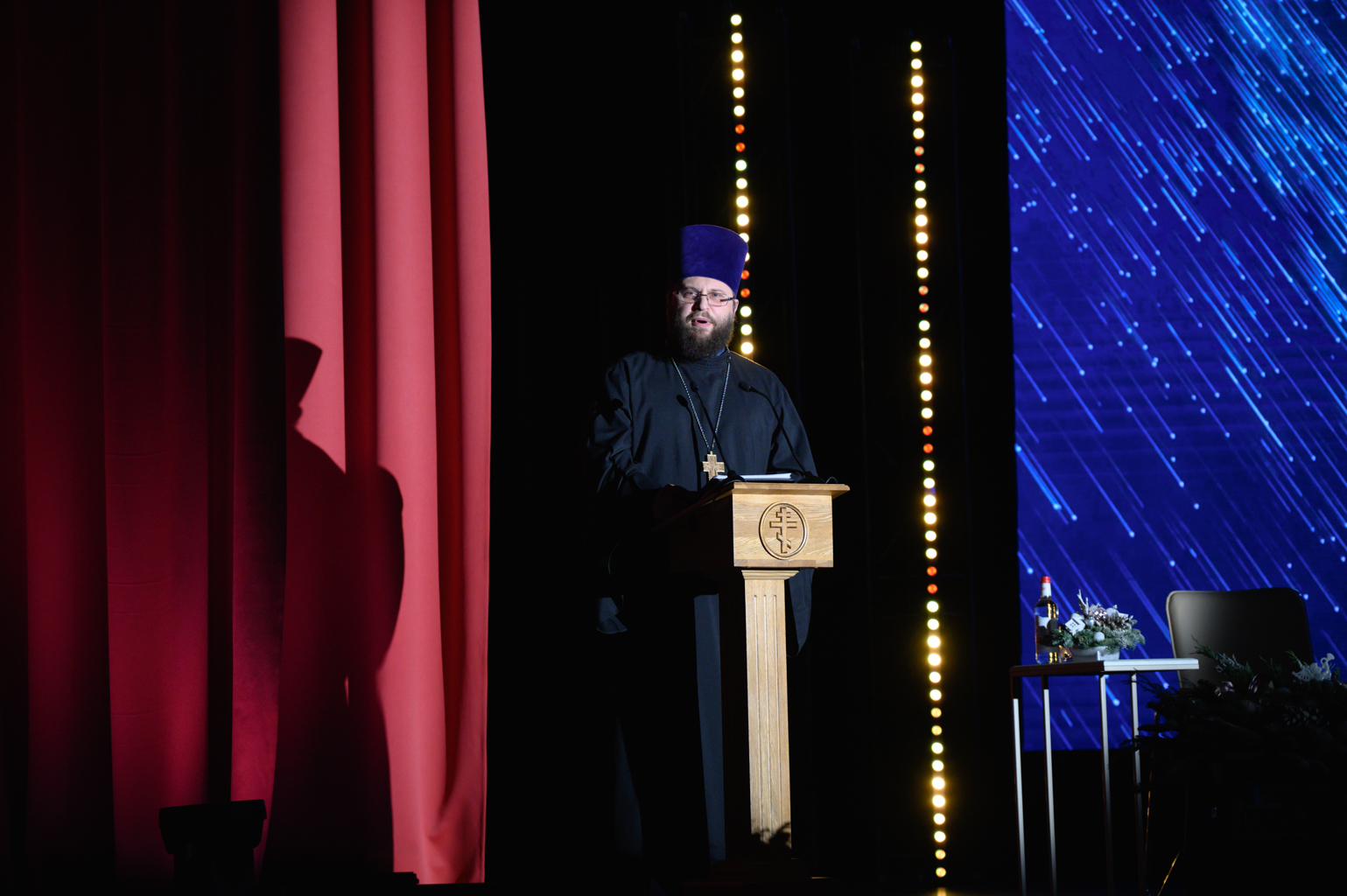 Пленарное заседание открыл преподаватель Сретенской и Московской духовных академий, настоятель храма Ризоположения Пресвятой Богородицы во Влахерне, в Леонове города Москвы протоиерей Андрей Рахновский.
