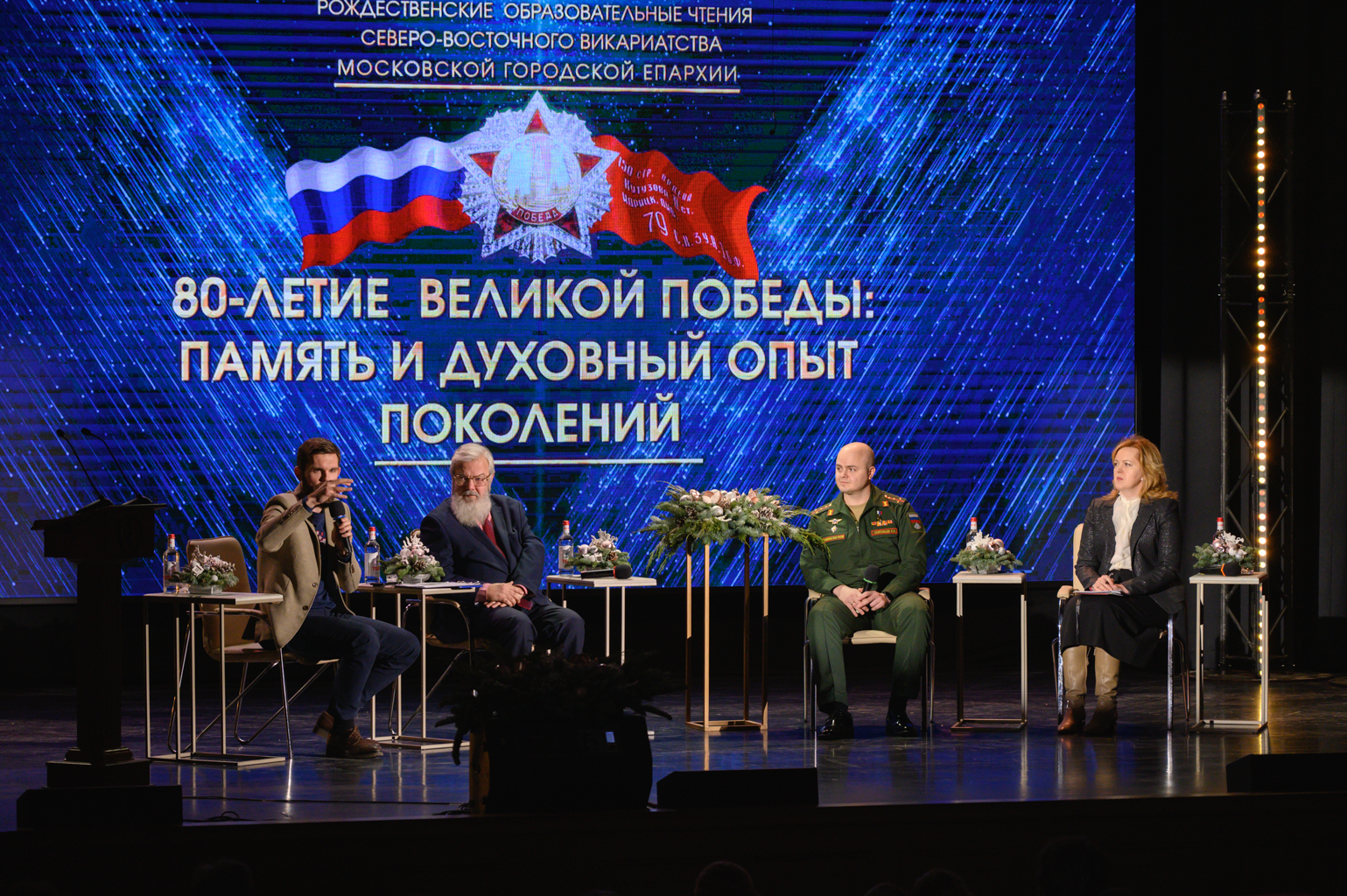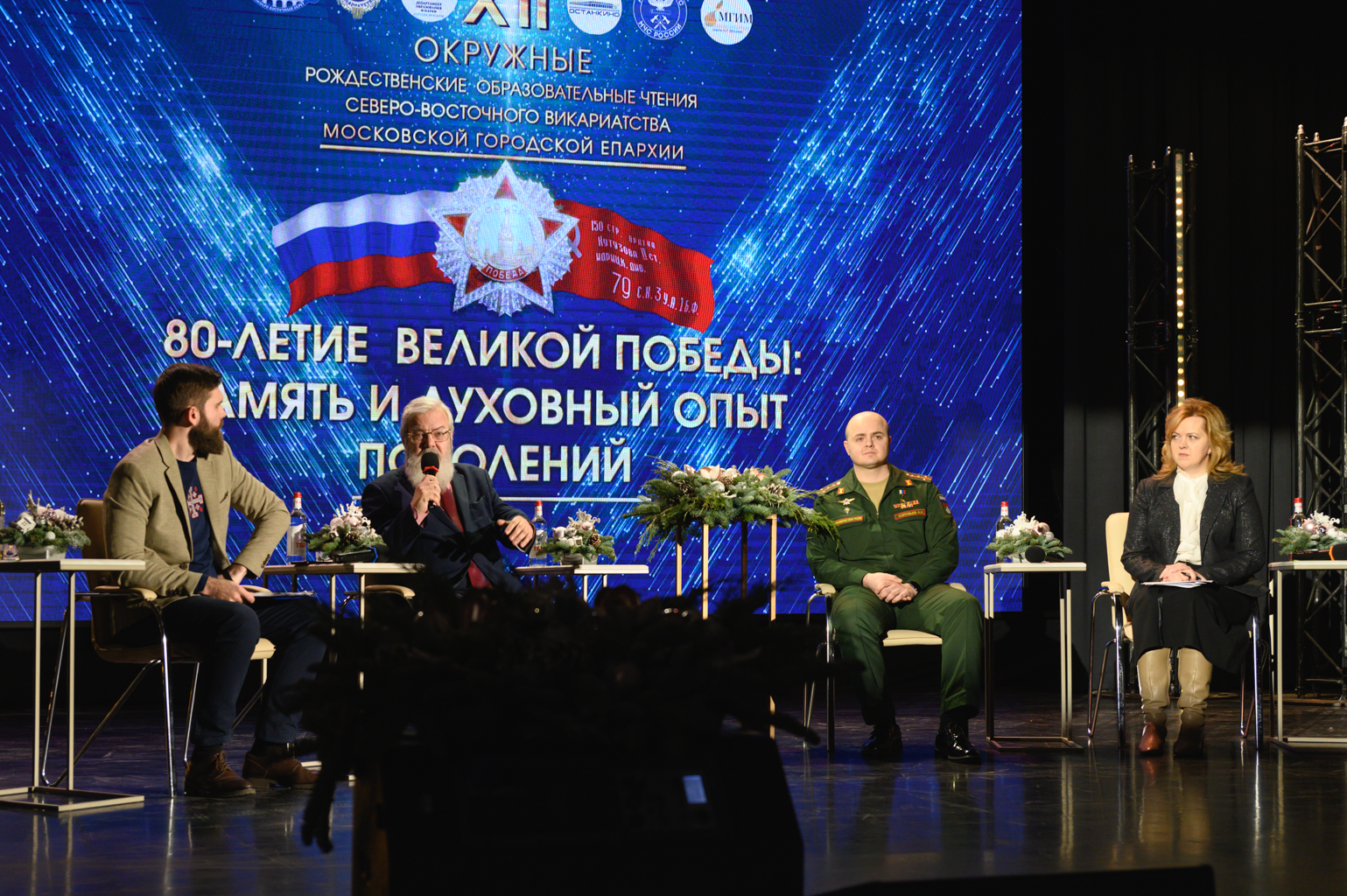 В панельной дискуссии приняли участие профессор Николо-Угрешской духовной семинарии, доктор исторических наук Владимир Михайлович Лавров; капитан ВС РФ, сотрудник 27-го Научного центра министерства обороны, Герой Российской Федерации Андрей Николаевич Соловьёв и ответственный секретарь Общественного совета при Министерстве строительства и жилищно-коммунального хозяйства Российской Федерации, помощник Министра строительства и жилищно- коммунального хозяйства РФ Светлана Петровна Кузьменко.