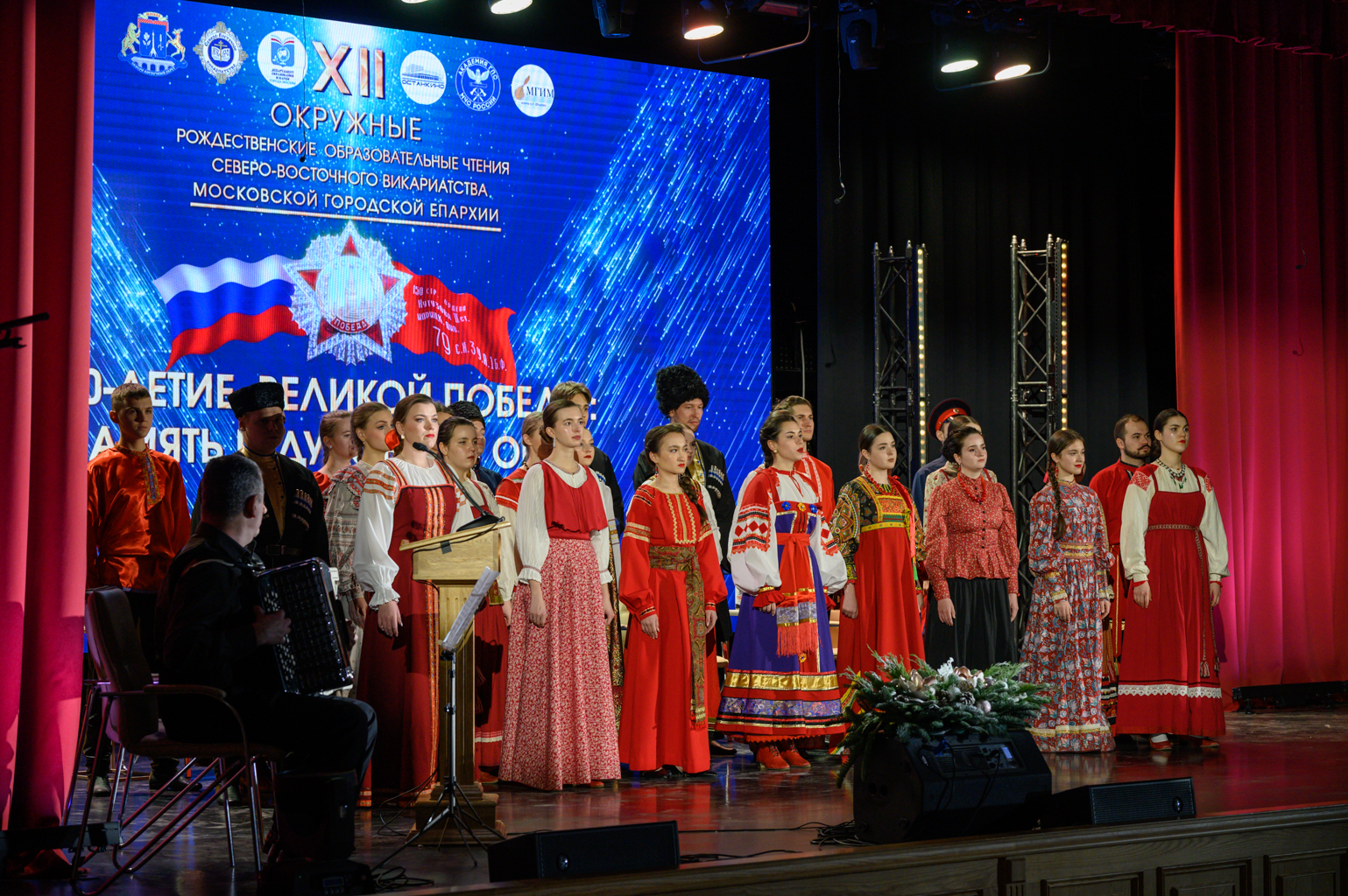 Завершилось торжественное мероприятие выступлением Русского народного хора Московского государственного института музыки имени А. Г. Шнитке.