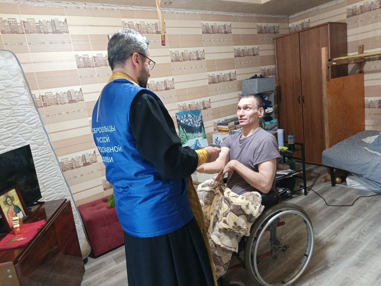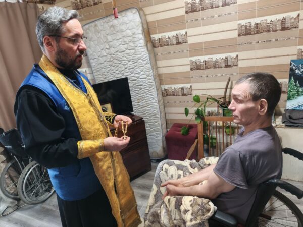 Ответственный за социальное служение в Северо-Восточном Московском викариатстве, ответственный по организации работ добровольцев на Донбассе от Северо-Восточного викариатства иерей Евгений Суслов вместе с добровольцами Центра помощи города Северодонецка Патриаршей гуманитарной миссии навестили подопечных и причастили их Святых Христовых Таин.