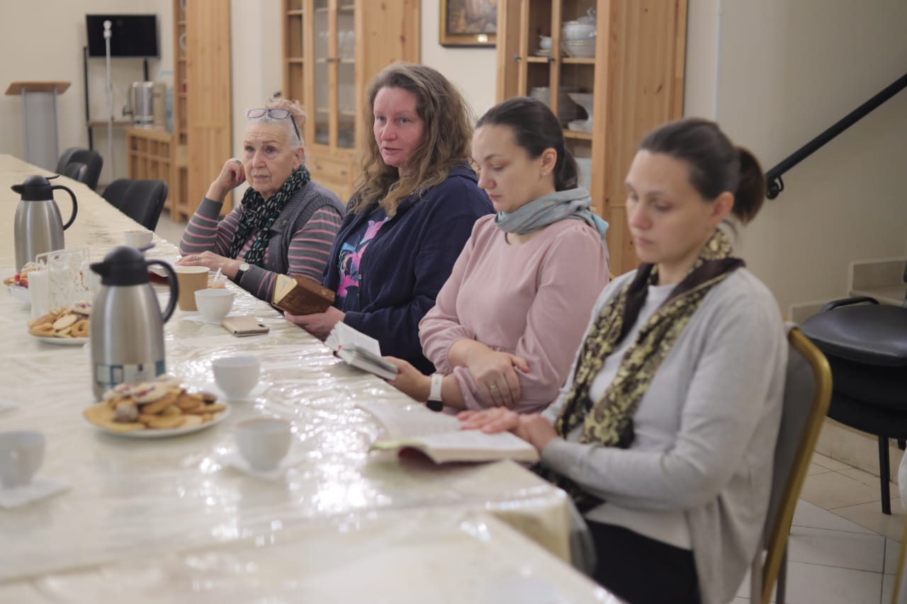 Участники занятия внимательно разобрали библейский текст и обсудили ключевые духовные аспекты: что означает истинно прикоснуться ко Господу — не физически, но сердцем и верой; как вера становится путем к спасению и исцелению; значение доверия и смирения перед Богом в моменты испытаний.