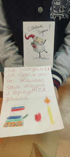 Одна из главных традиций приближающегося праздника Рождества Христова — дарить радость и любовь ближним. Ребята вместе с педагогами очень хотели сделать приятное тем, кто сейчас находится вдали от дома и подарить частичку тепла и радости. В письмах воспитанники оставили добрые пожелания и открытки с новогодней и рождественской тематикой.