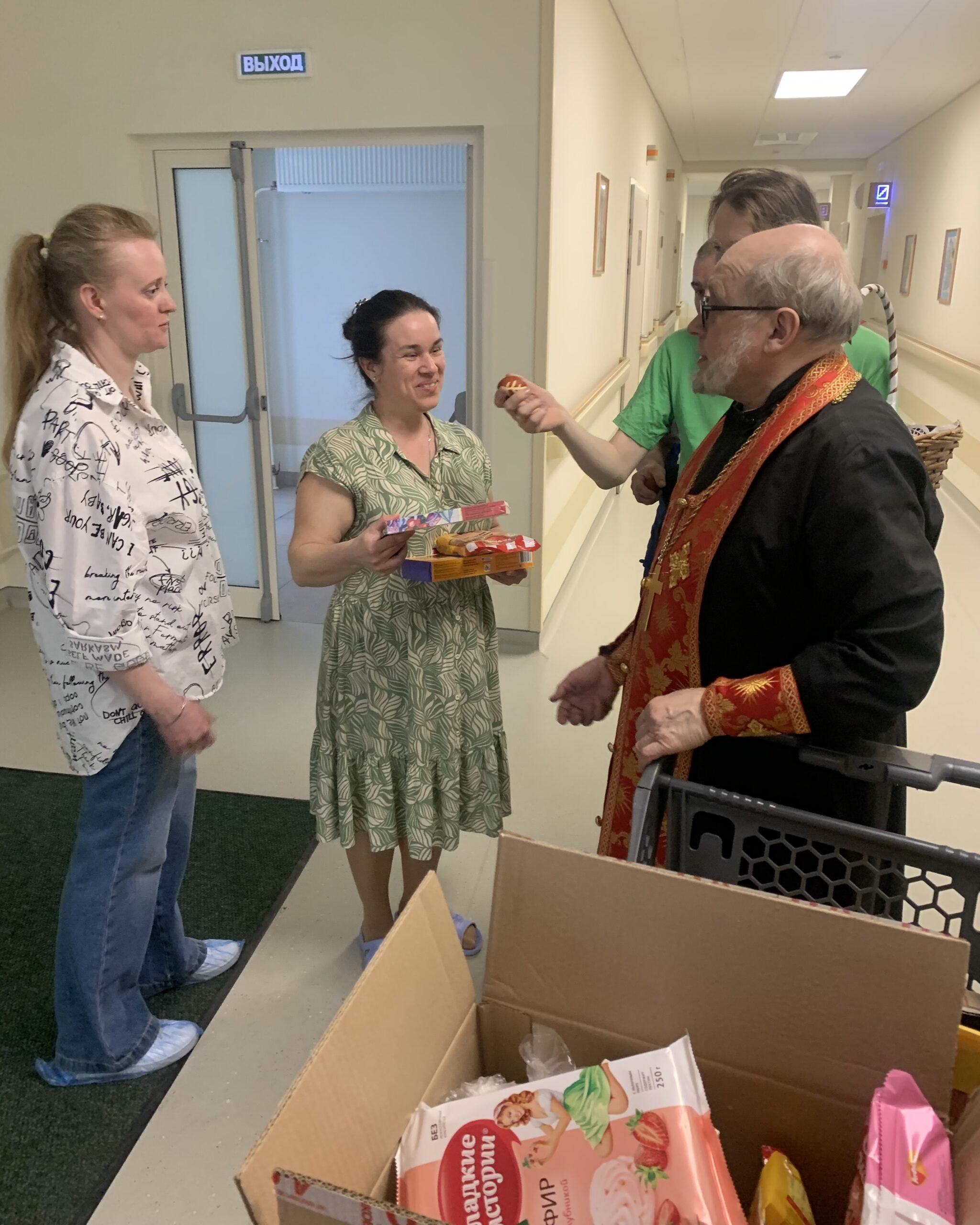 На Светлой седмице представители храма святых мучениц Веры, Надежды, Любови и матери их Софии на Миусском кладбище поздравили сотрудников и пациентов Московского многопрофильного центра паллиативной помощи, филиал хоспис «Савёловский» с праздником Пасхи Господней.