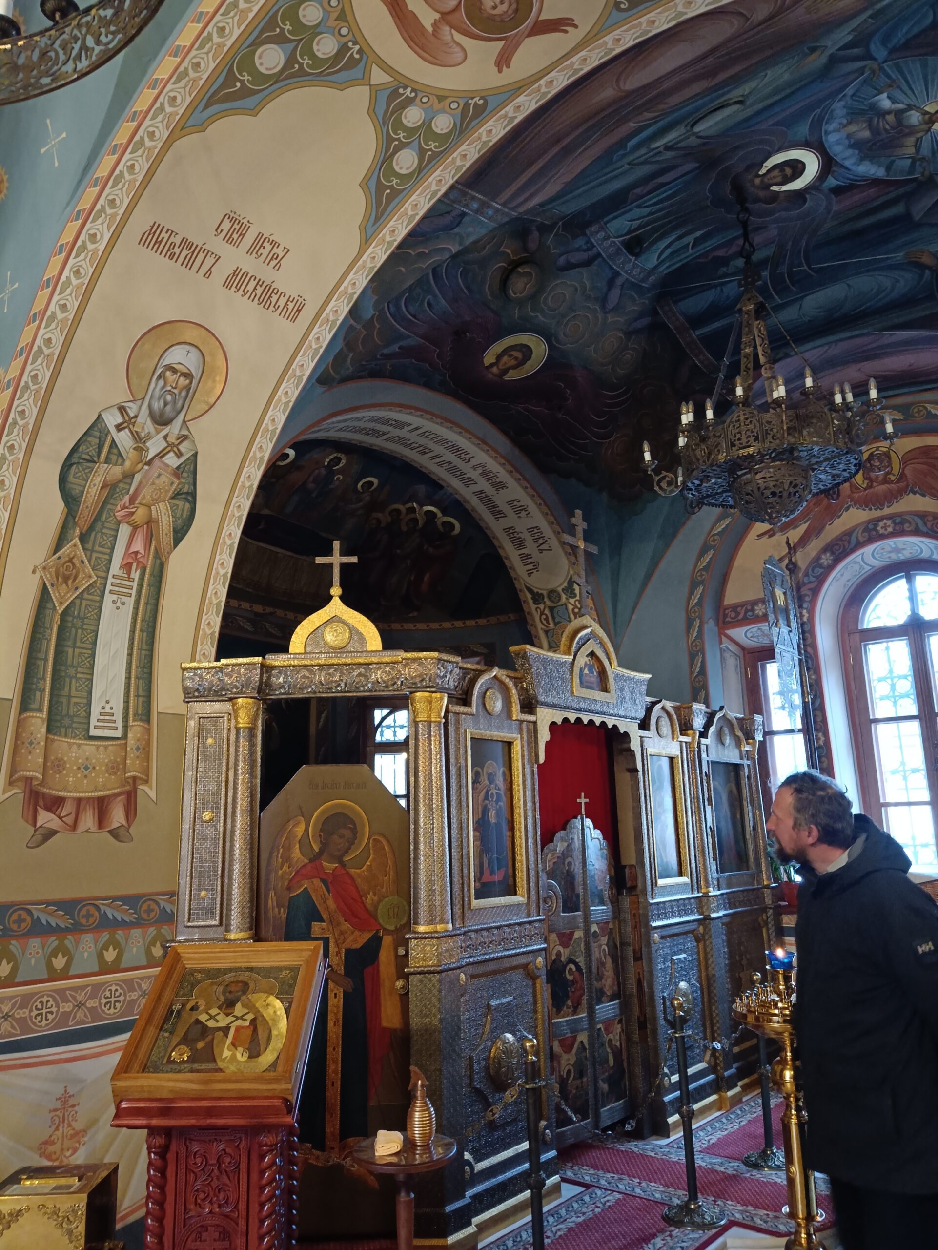 На территории подворья группу встретила местный экскурсовод Галина Владимировна Федорова, которая более подробно рассказала об архитектуре храма Спаса Преображения и храма Святого благоверного великого князя Игоря Черниговского. Внутри храмов она объяснила содержание фресок, художественные особенности и указала на особо почитаемые Святыни.