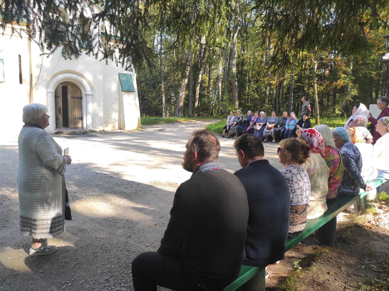 В музее-заповеднике Абрамцево паломников ждала большая экскурсионная программа «Абрамцево — культурный центр России XIX века». Богатая история усадьбы, сонм прекрасных художников, литераторов. В гостеприимной семье Саввы Мамонтова бывали и творили Тургенев, Гоголь, Врубель, Васнецов, Нестеров, Поленов, Серов, Суриков, Левитан и многие другие.