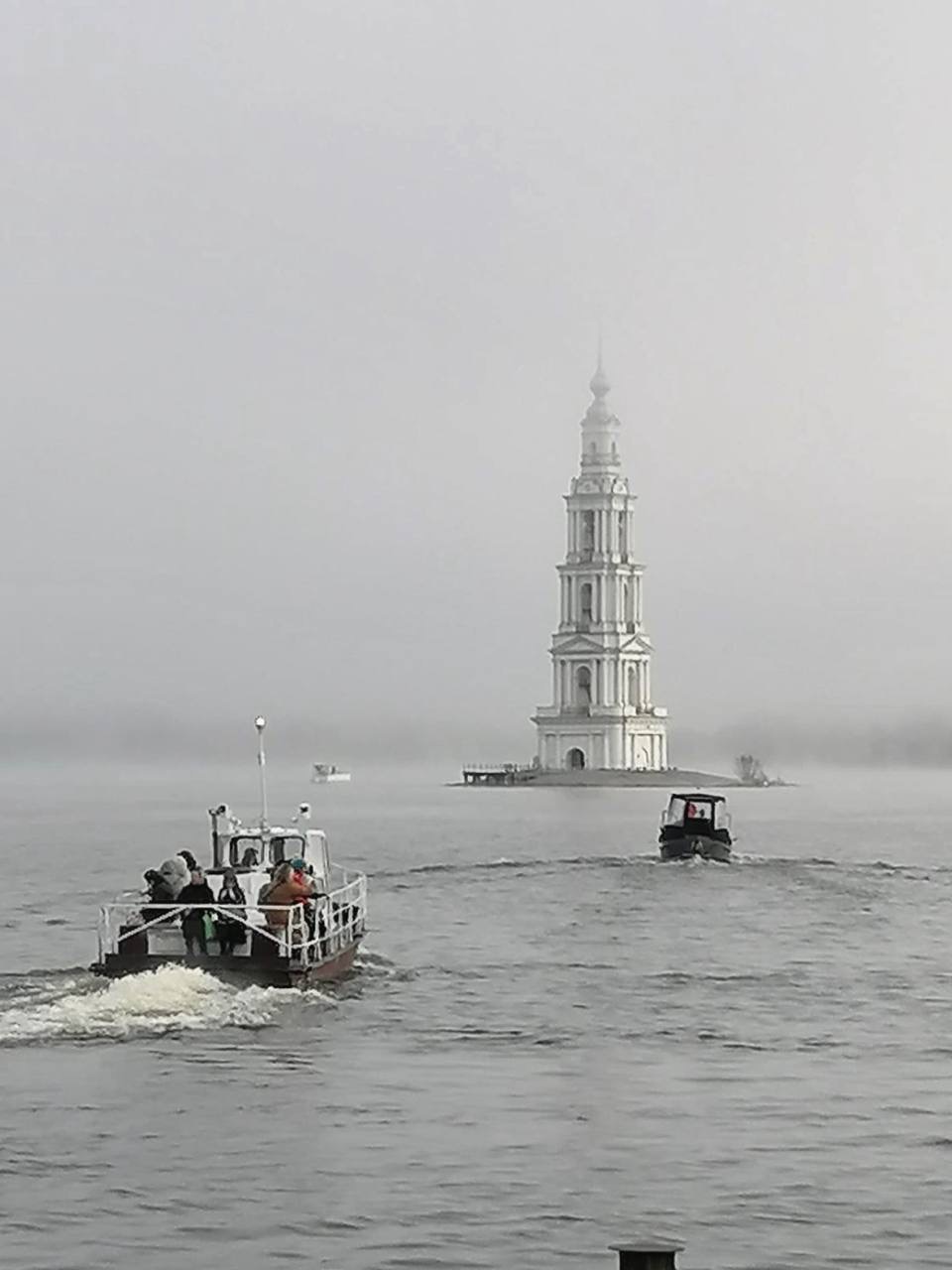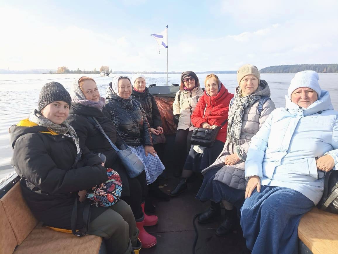 Первой остановкой стал древний город Калязин. Паломники на катерах отправились к знаменитой колокольне Николаевского собора — символу стойкости веры, уцелевшему после затопления города. Затем посетили Монастырский остров, где ведутся работы по восстановлению Троицкого Макарьева монастыря, и приложились к святыням в местной часовне. Завершился визит в Калязин молитвой у мощей преподобного Макария Калязинского в Вознесенском храме.