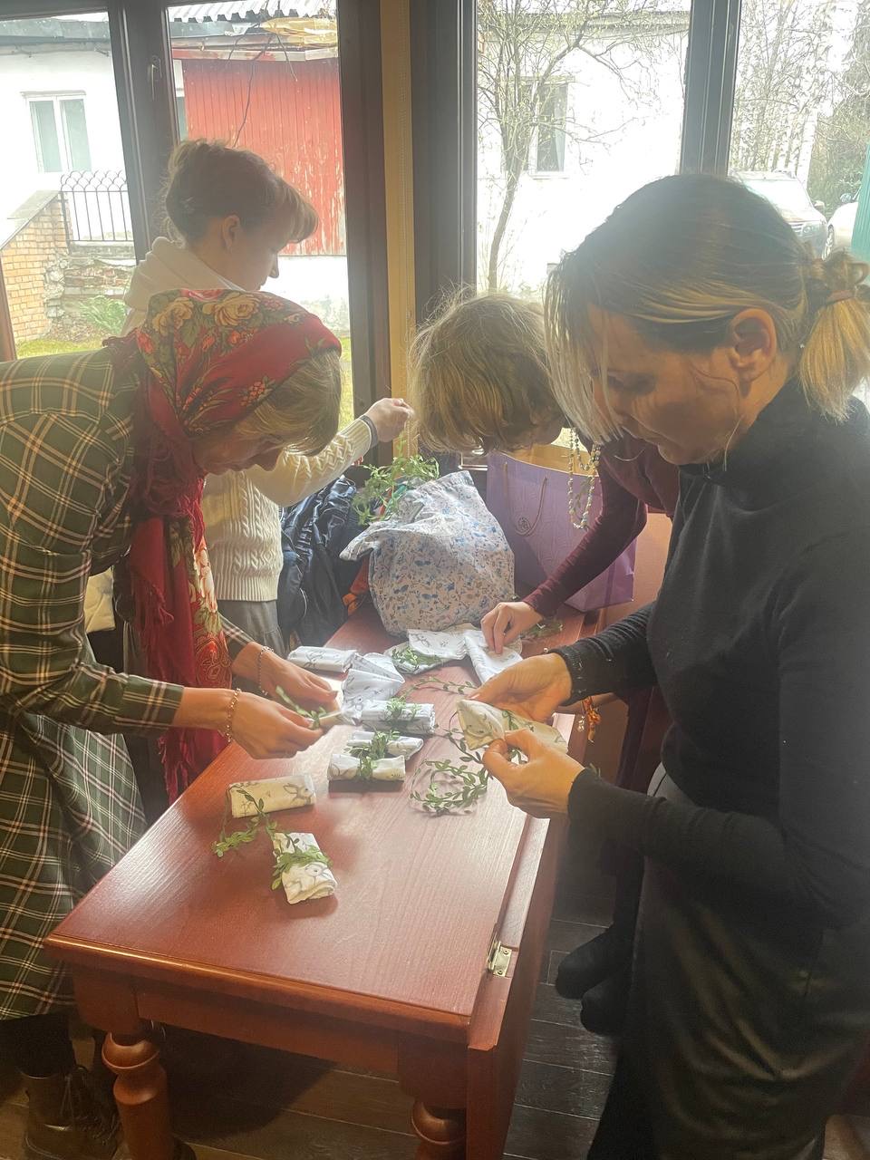В Великий Четверг прихожане храма Положения Ризы Пресвятой Богородицы во Влахерне, в Леонове собрались после поздней Литургии, чтобы упаковать подарки для пациентов Московского многопрофильного центра паллиативной помощи Департамента здравоохранения города Москвы — хосписа «Ростокино» к празднику Пасхи.