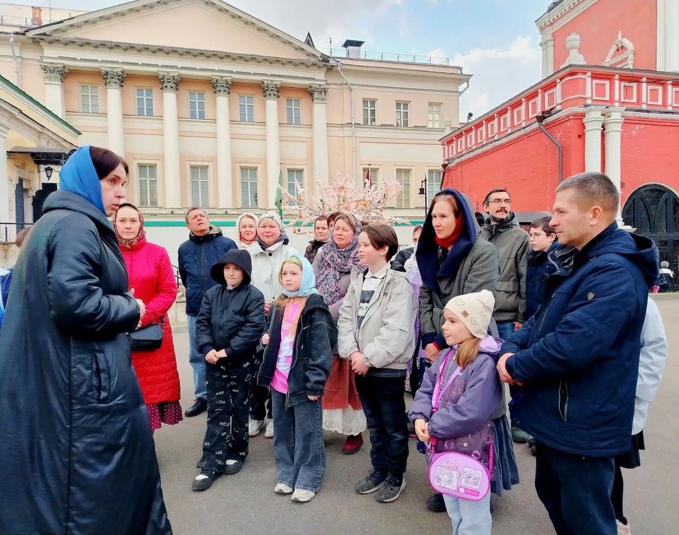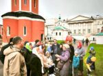 Большая группа была разделена на две — вместе с экскурсоводами прошли по монастырю, приложившись и к монастырским святыням: к иконе святителя Петра, чудотворной Казанской иконе Божией Матери, Влахернской иконе Божией Матери. Посетили Собор Святителя Петра, Церковь Преподобного Сергия Радонежского, Церковь Толгской иконы Божией Матери. Также в монастыре есть поклонный Крест, хранящий более 200 частиц мощей святых.