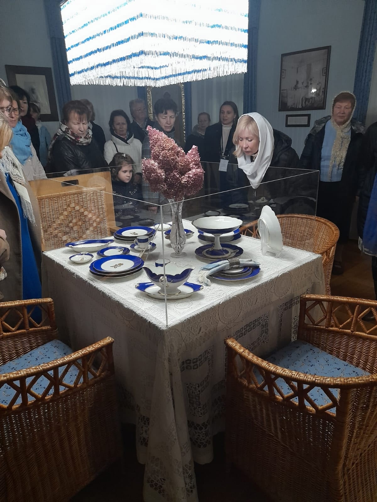 Затем они посетили музей — дом, в котором жила святая основательница Марфо-Мариинской обители. Дореволюционный облик комнат дома-музея восстановлен по фотографиям. Здесь собраны уникальные святыни: образ Спаса Нерукотворного, собственноручно вышитый великой княгиней, а также созданные ею иконы святых праведных Марфы и Марии, письмо к сестрам обители, отправленное из Алапаевской ссылки, множество других исторических документов.