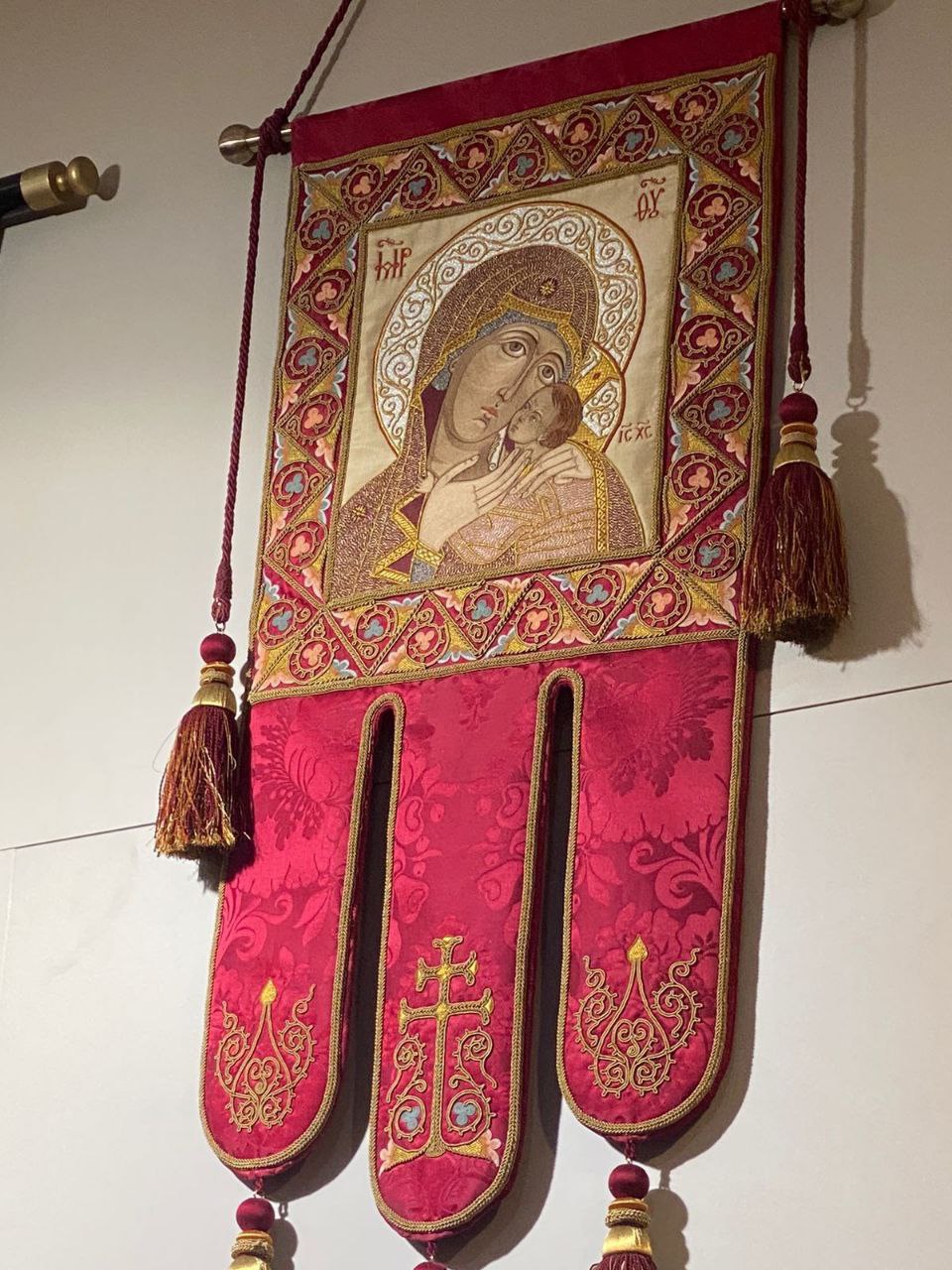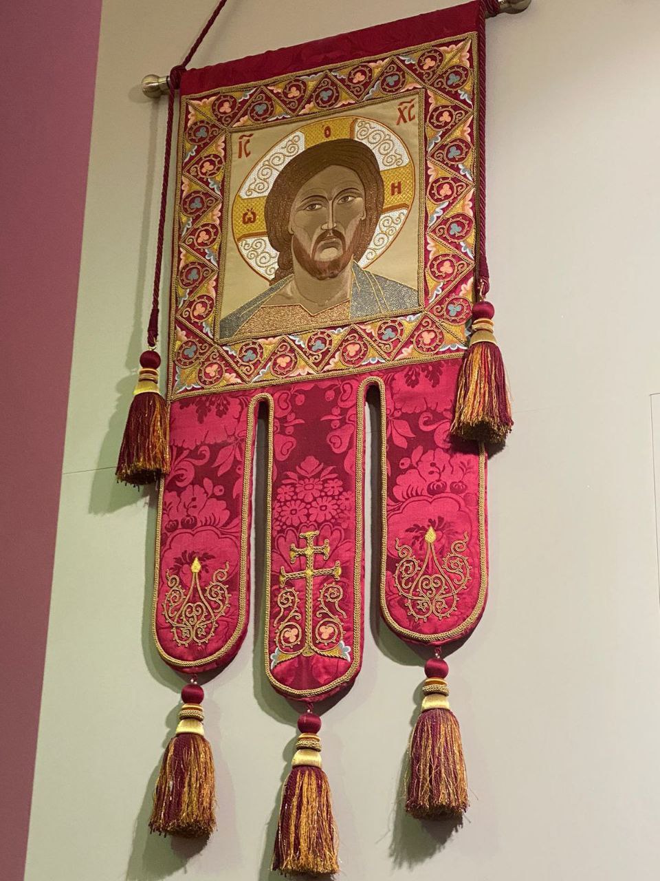 Вторым проектом стали две хоругви с образами Спаса и Богородицы — это результат соборного труда мастерской «Со-действие» при Православном гуманитарном институте, в которой Марина работает и преподает.