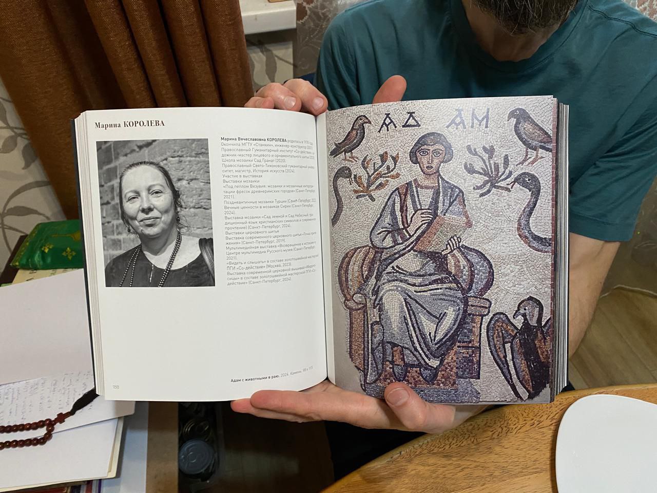 Одной из центральных работ Марины стала мозаичная копия фрагмента древнего памятника — «Адам с животными в раю». Оригинал этой мозаики V века, созданный из мрамора для церкви в Сирии, ныне хранится в музее. На создание данной копии размером почти в квадратный метр ушло около двух лет, учитывая, что работа велась с перерывами.