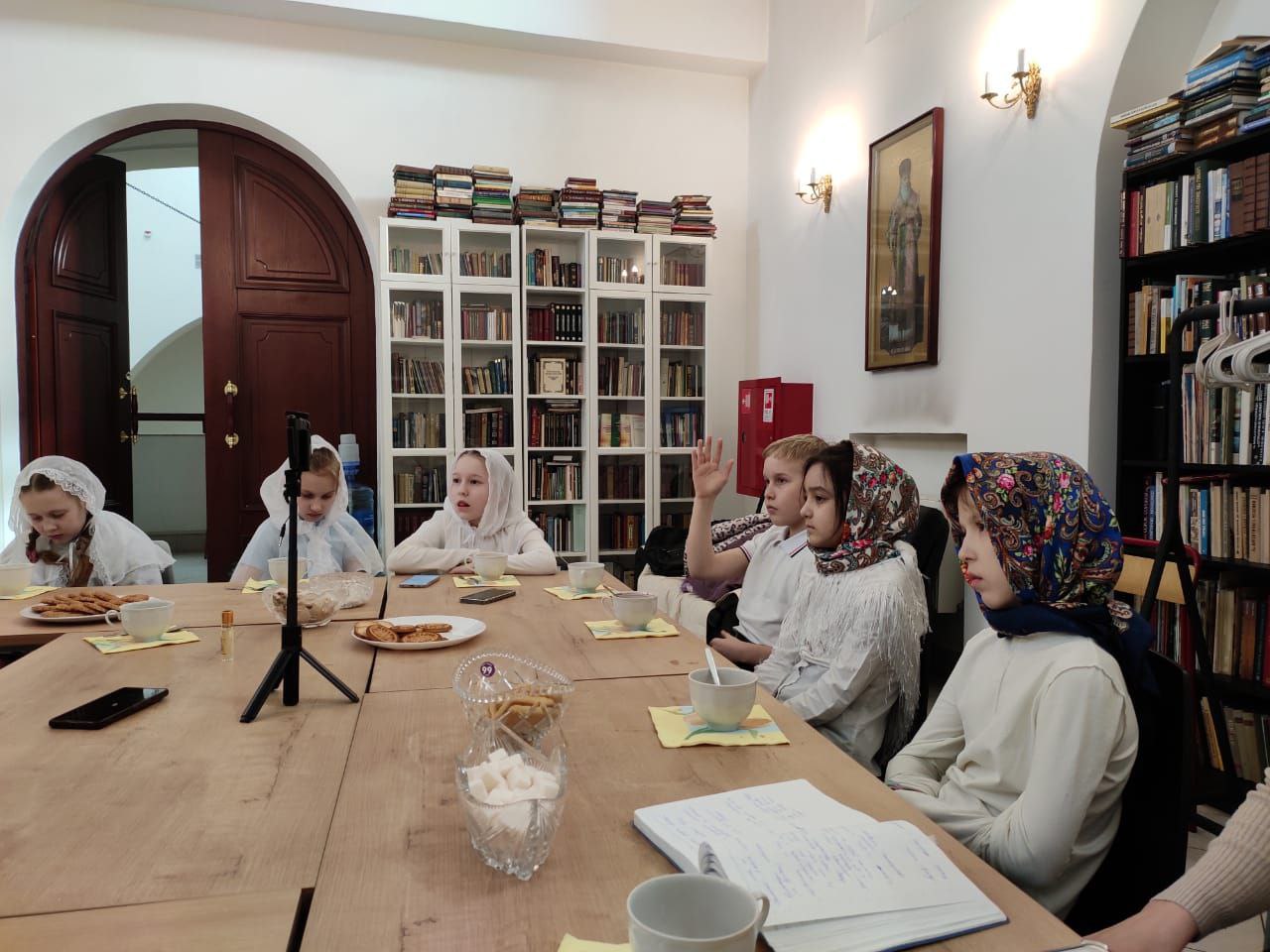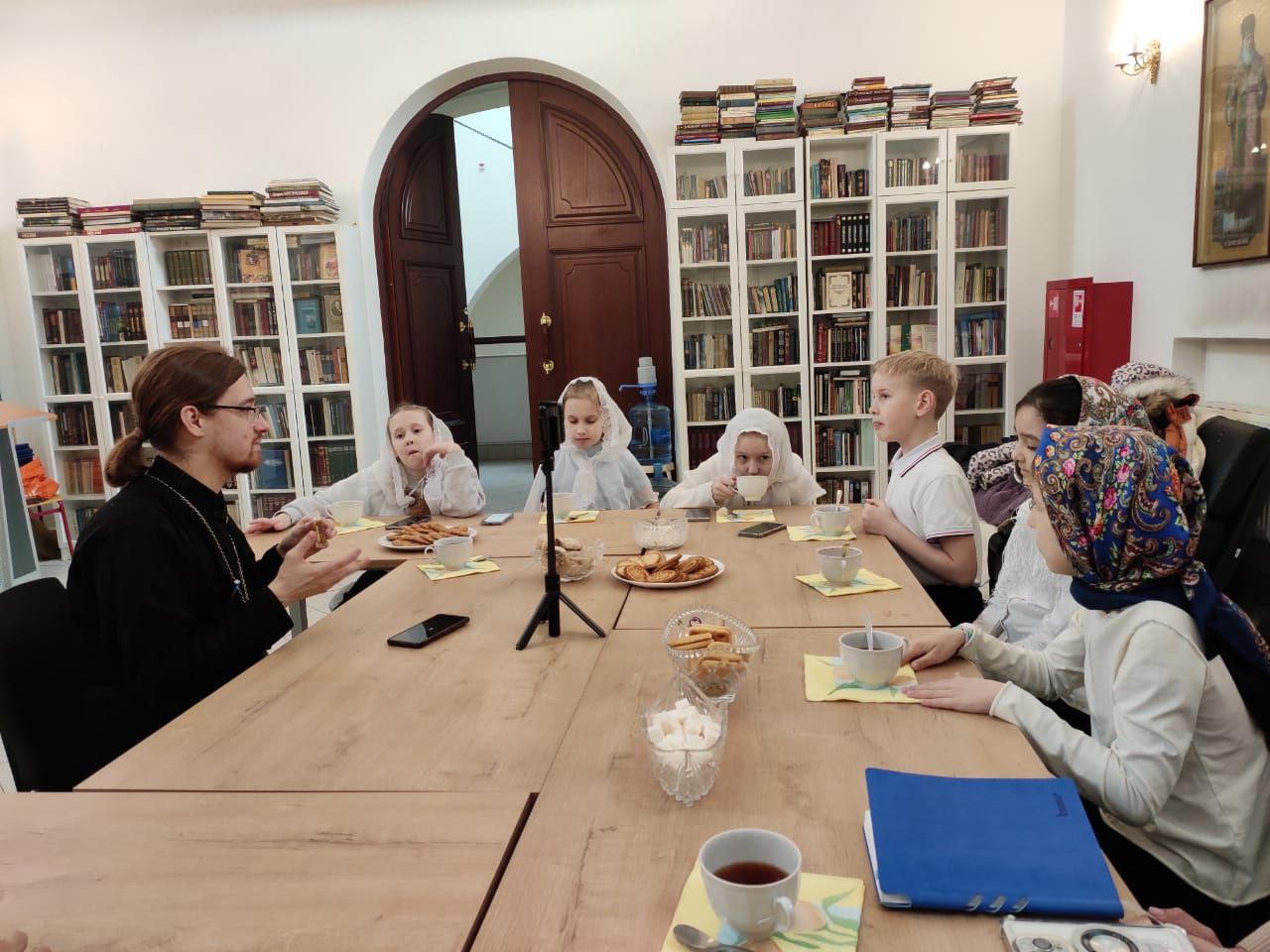 На встрече ребята сами предложили отцу Александру тему беседы и вовлечённо слушали его рассказ об истории и назначении церковной утвари и различных предметах, используемых в храме при богослужении и не только.