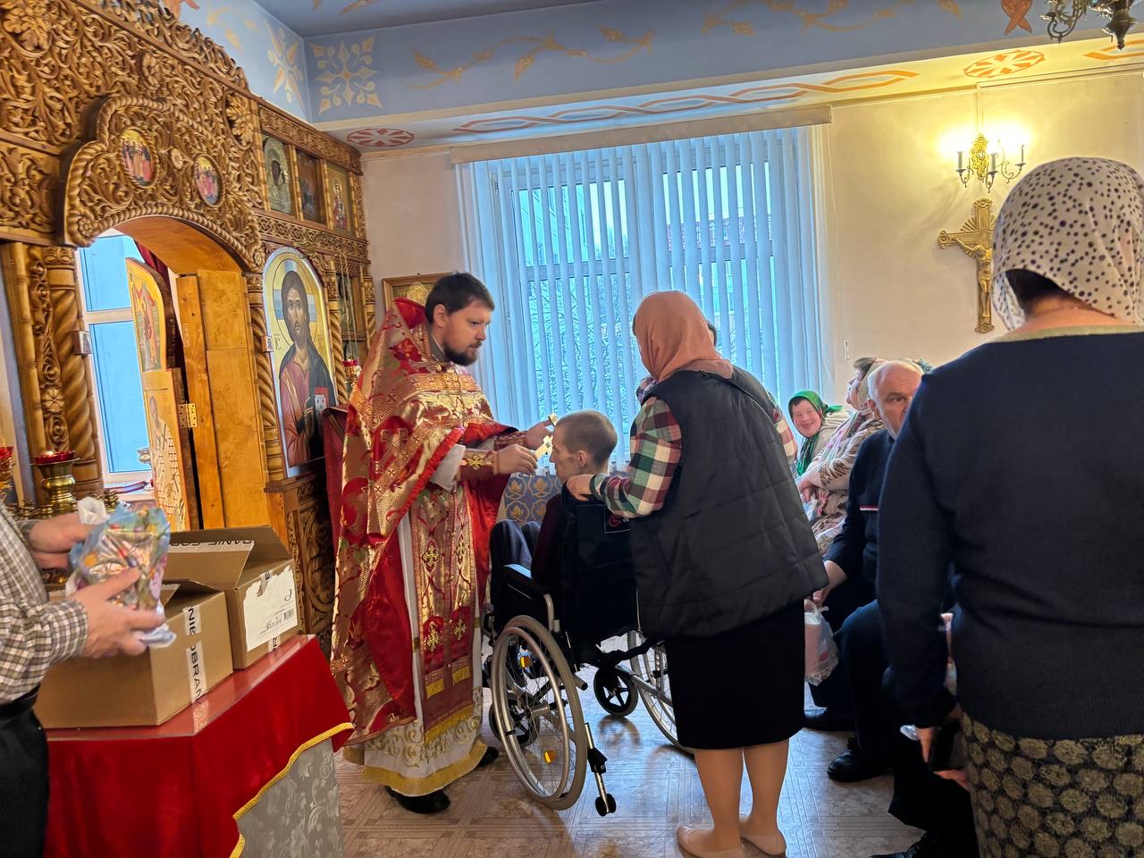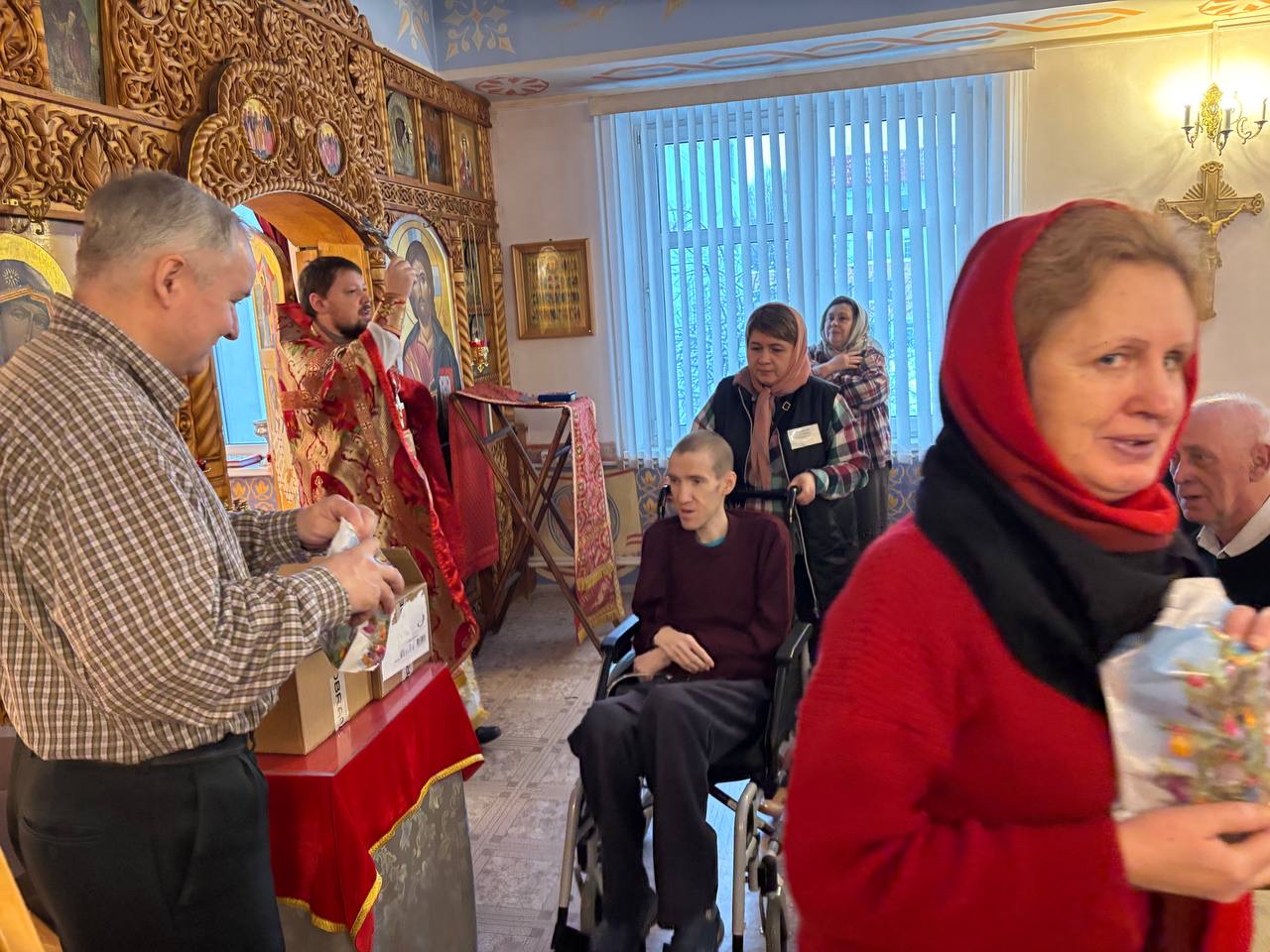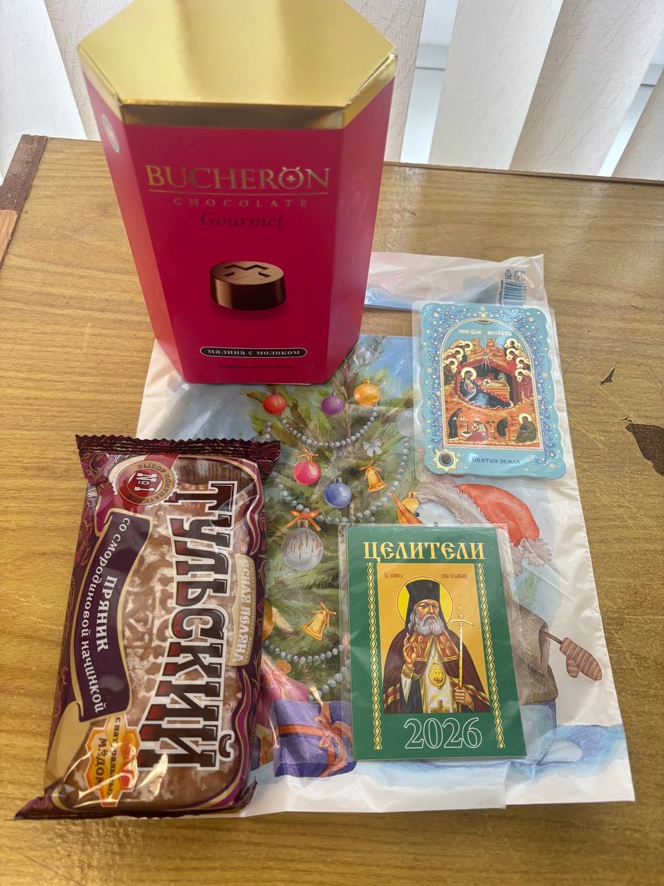 По окончании Литургии отец Иоанн поздравил с Рождеством Христовым и порадовал всех присутствовавших праздничными рождественскими подарками.