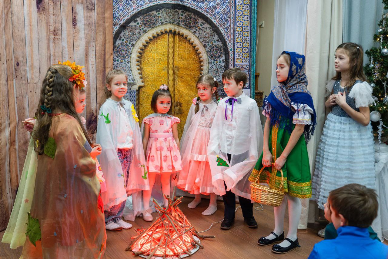 Зрителей ждала большая программа. Юные артисты показали две театральные постановки: легенду о Рождественской елочке в исполнении малышей и сказку «Двенадцать месяцев» в исполнении старших ребят.