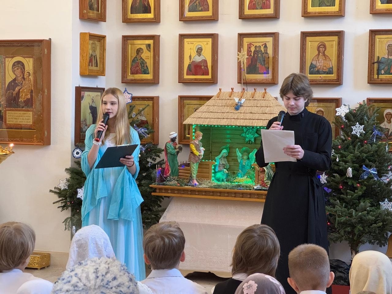 На празднике Рождества прозвучали детские рождественские песни и стихи. По традиции, был показан авторский инсценированный мини-спектакль «Шествие волхвов в Вифлеем». Авторы, авторские песни, исполнители, ведущие, артисты — все это ученики, учителя, родители воскресной школы. Праздник украсила своими авторскими духовными песнями певица Анна Сизова.