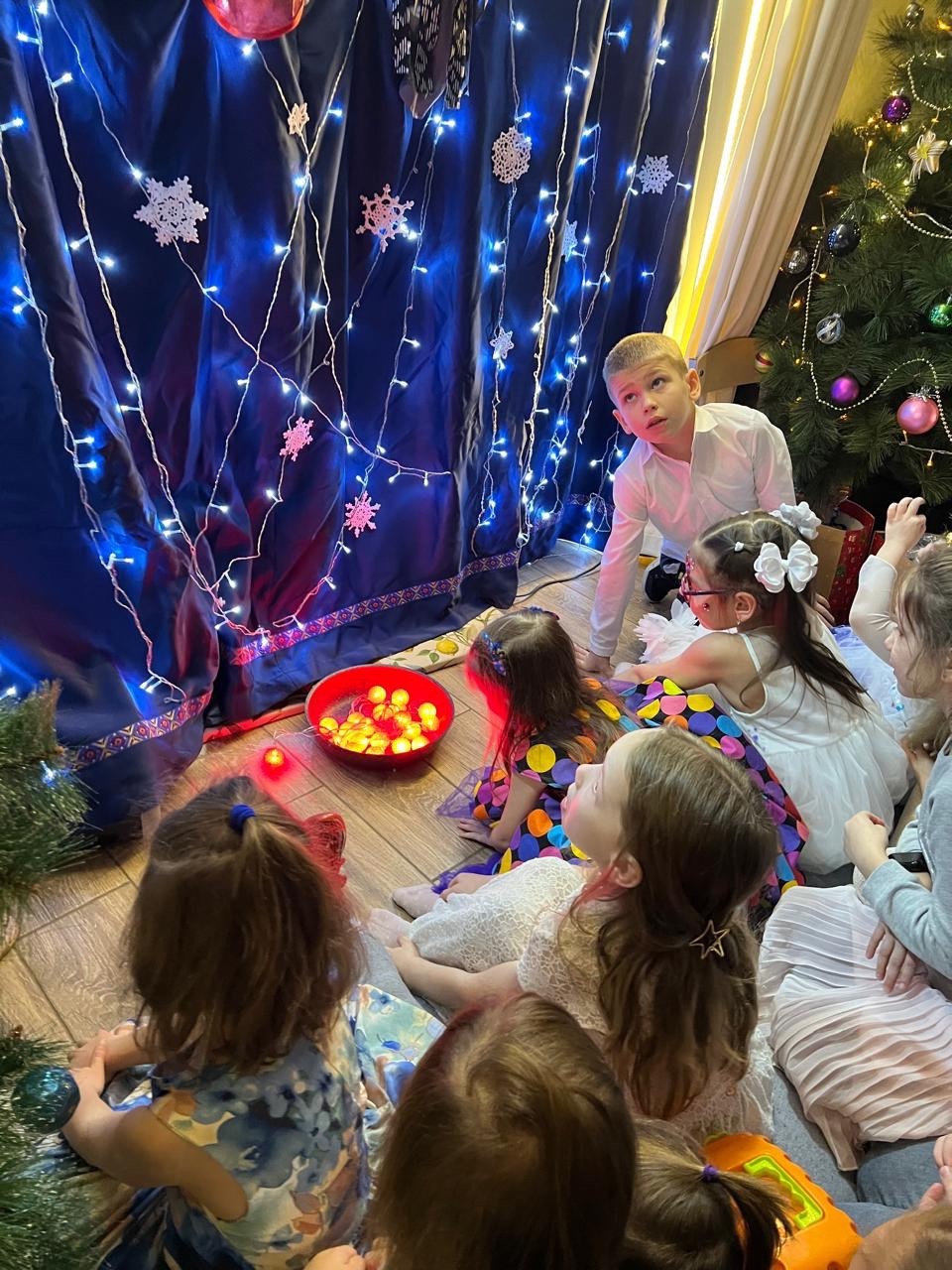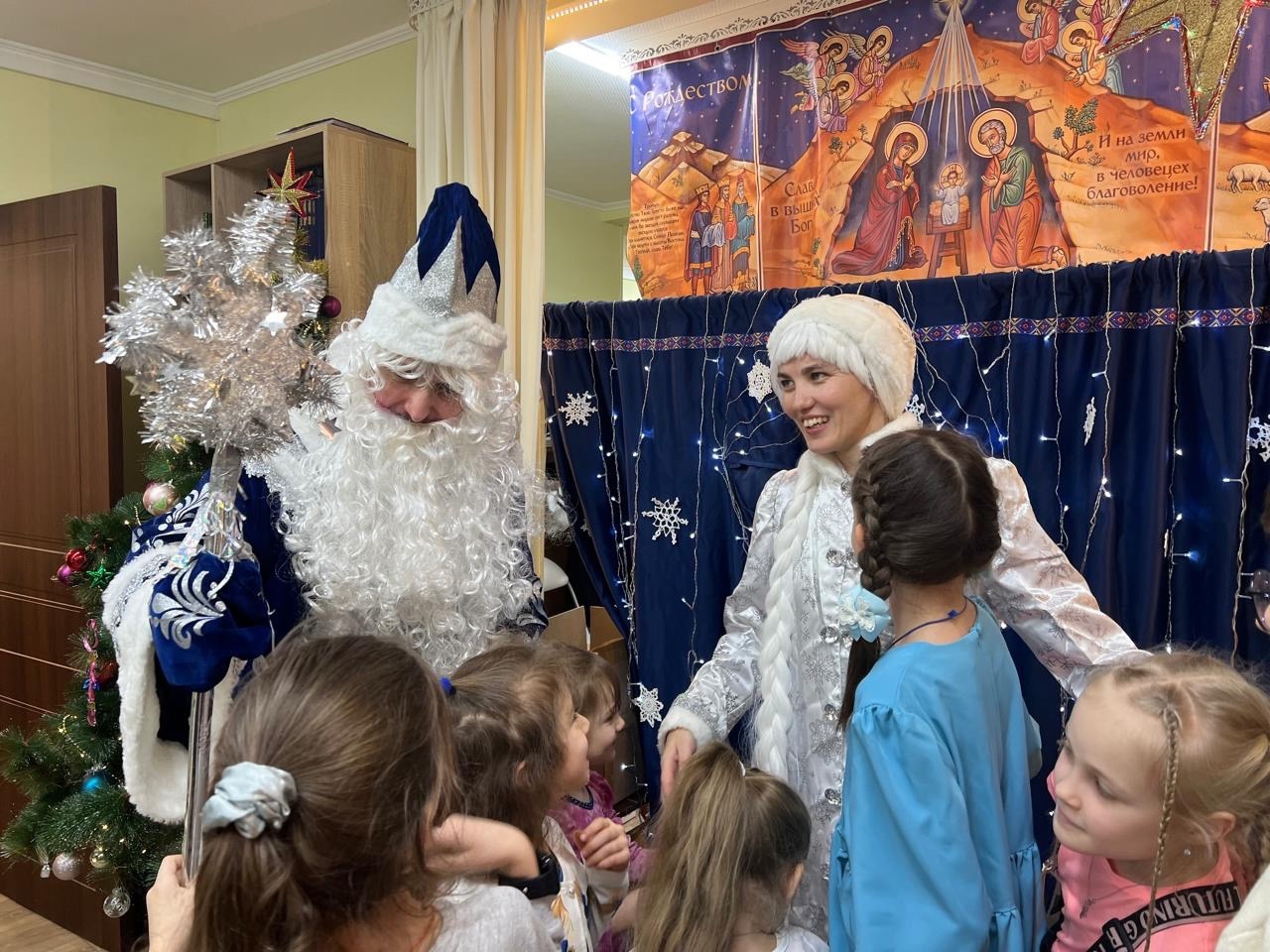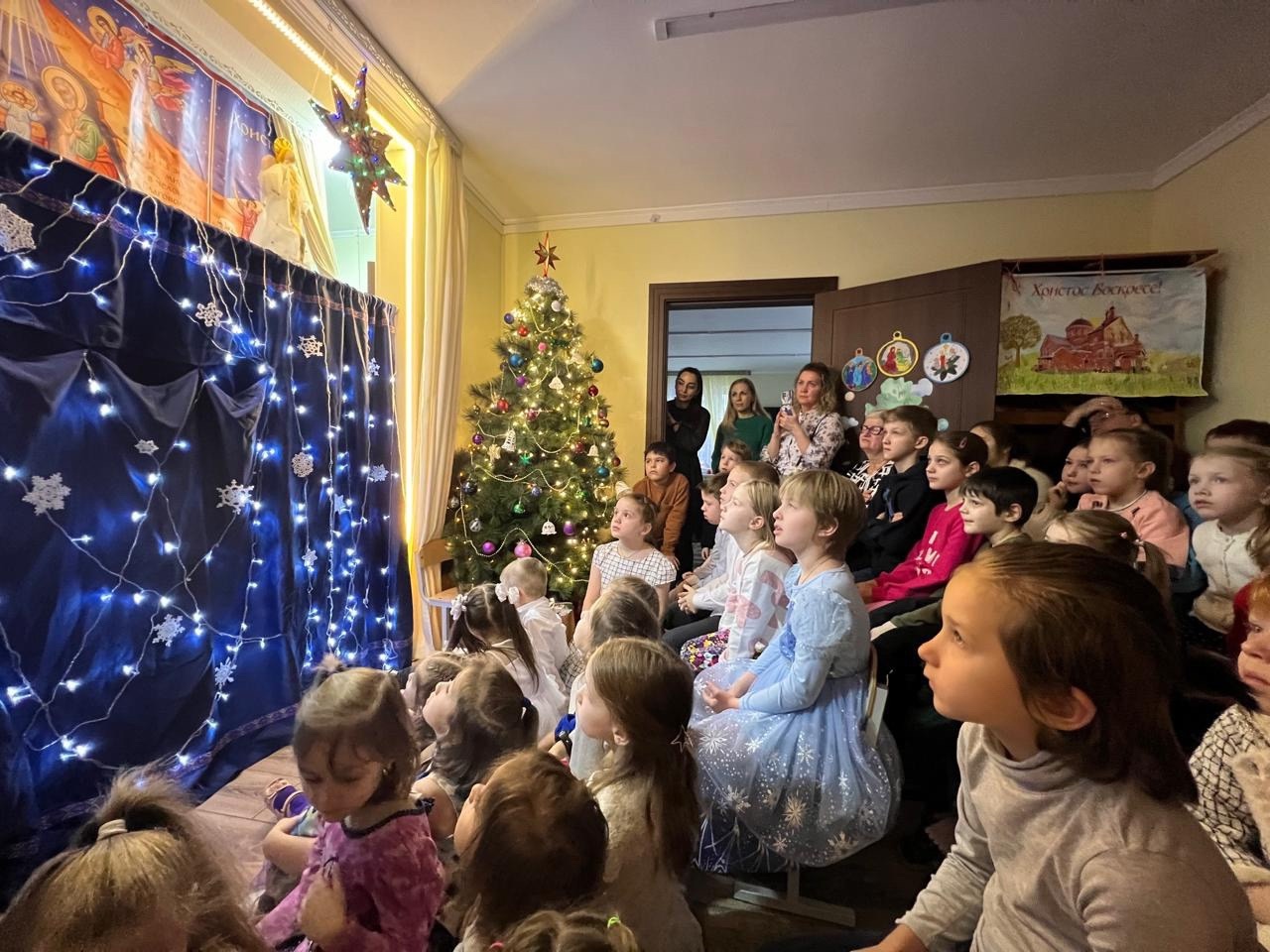 Младшие детки читали рождественские стихи. Подростки старшей группы поставили большой Рождественский спектакль, рассказывающий о Рождении Христа, начиная с первого Обетования, данного Богом еще в Раю. В спектакле принимали участие также школьные хоры: и детский, и взрослый, и ребята приходской молодежки.