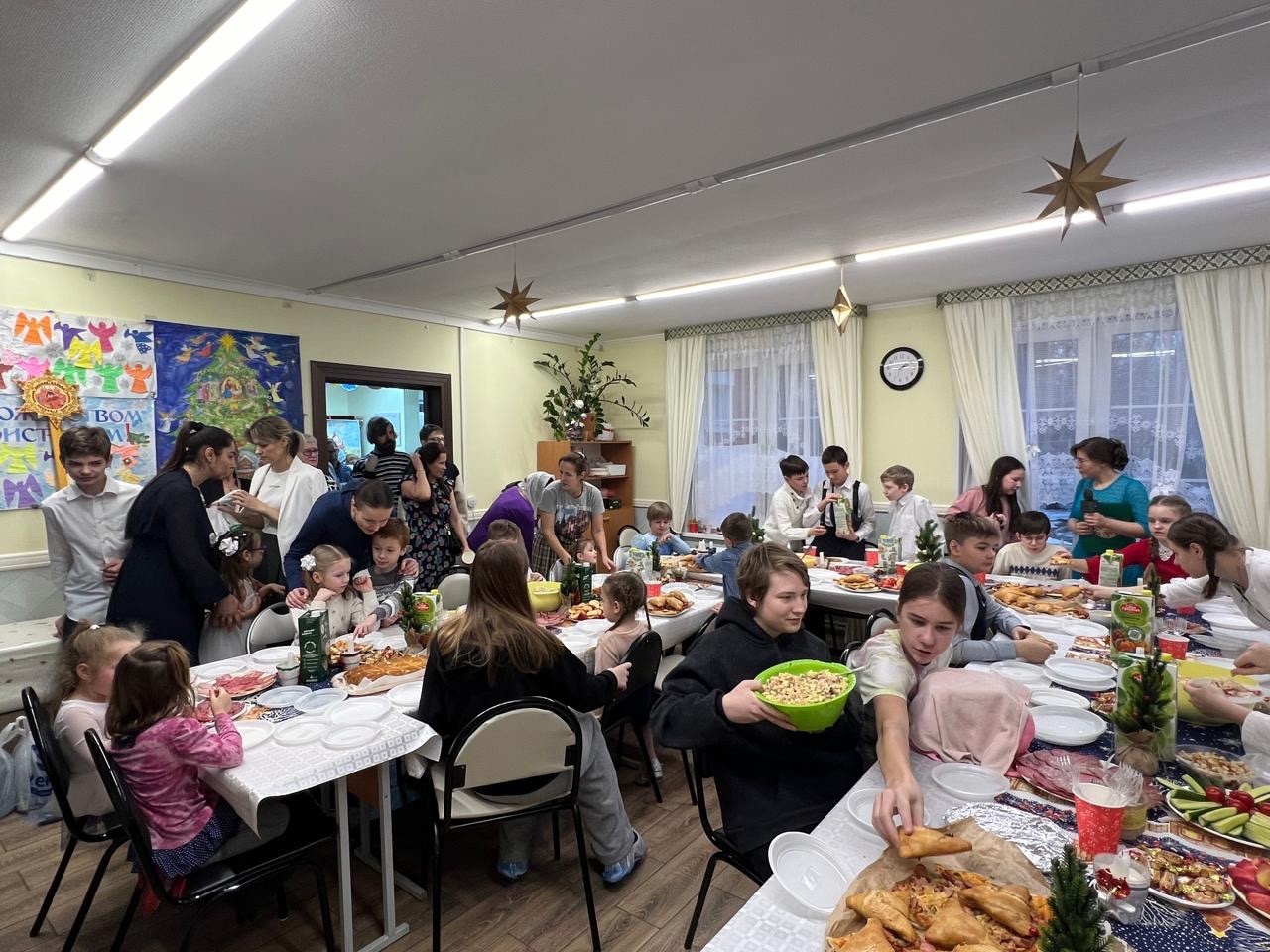 Завершился праздник праздничной трапезой, приготовленной силами мам воспитанников воскресной школы храма. И, конечно же, подарками — пряники ручной работы, сделанные прихожанками «Семейного клуба», памятные сувенирчики с Рождеством Христовым и сладкий подарок.