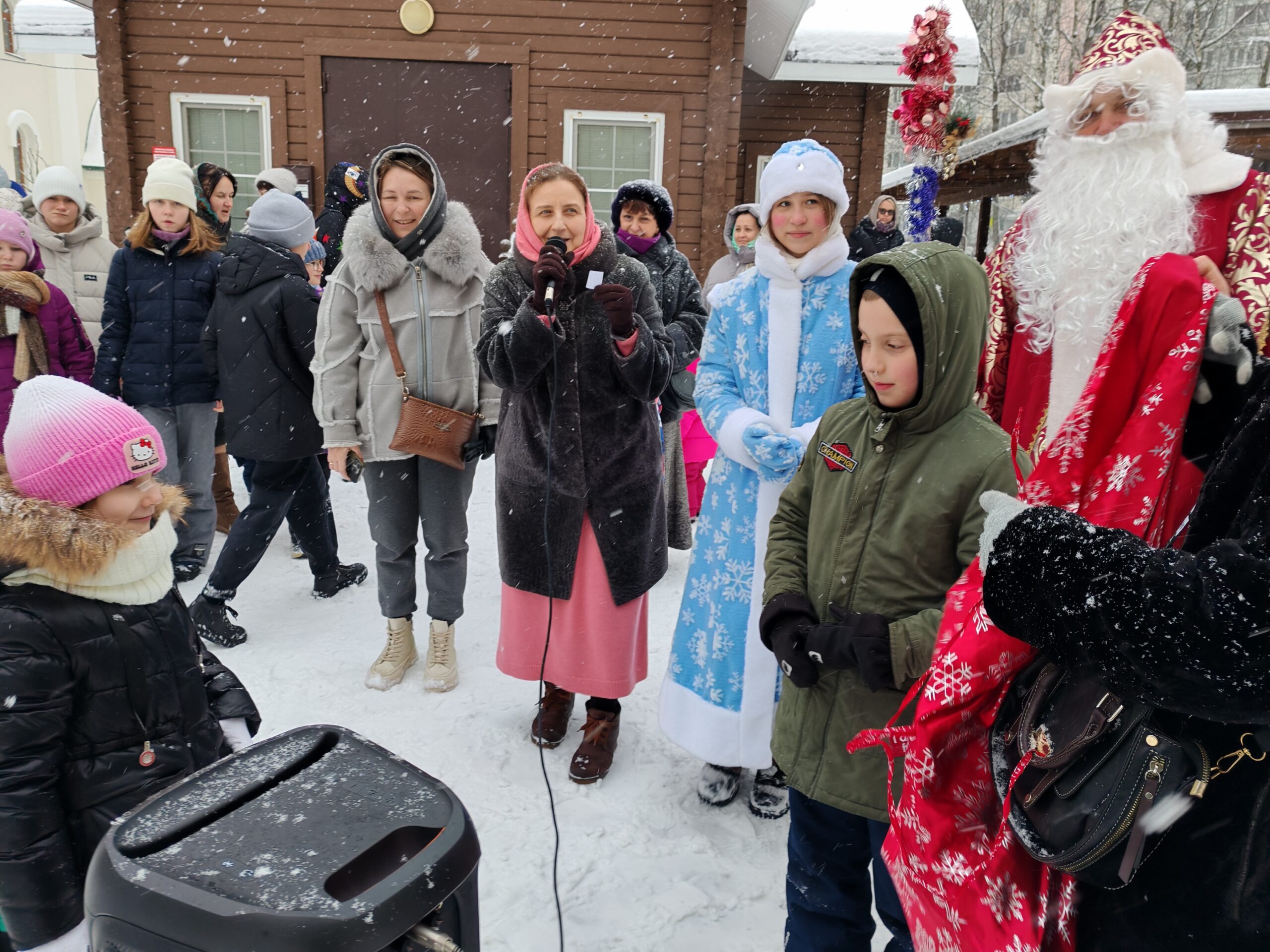 Особую радость для детей и взрослых принесли долгожданные гости – Дед Мороз и Снегурочка. Они устроили весёлые эстафеты, разделив гостей на две команды. Было и перетягивание каната, и чтение стихов у новогодней ёлки. В завершение каждый ребенок получил заветный подарок – и от сказочных гостей, и от храма.