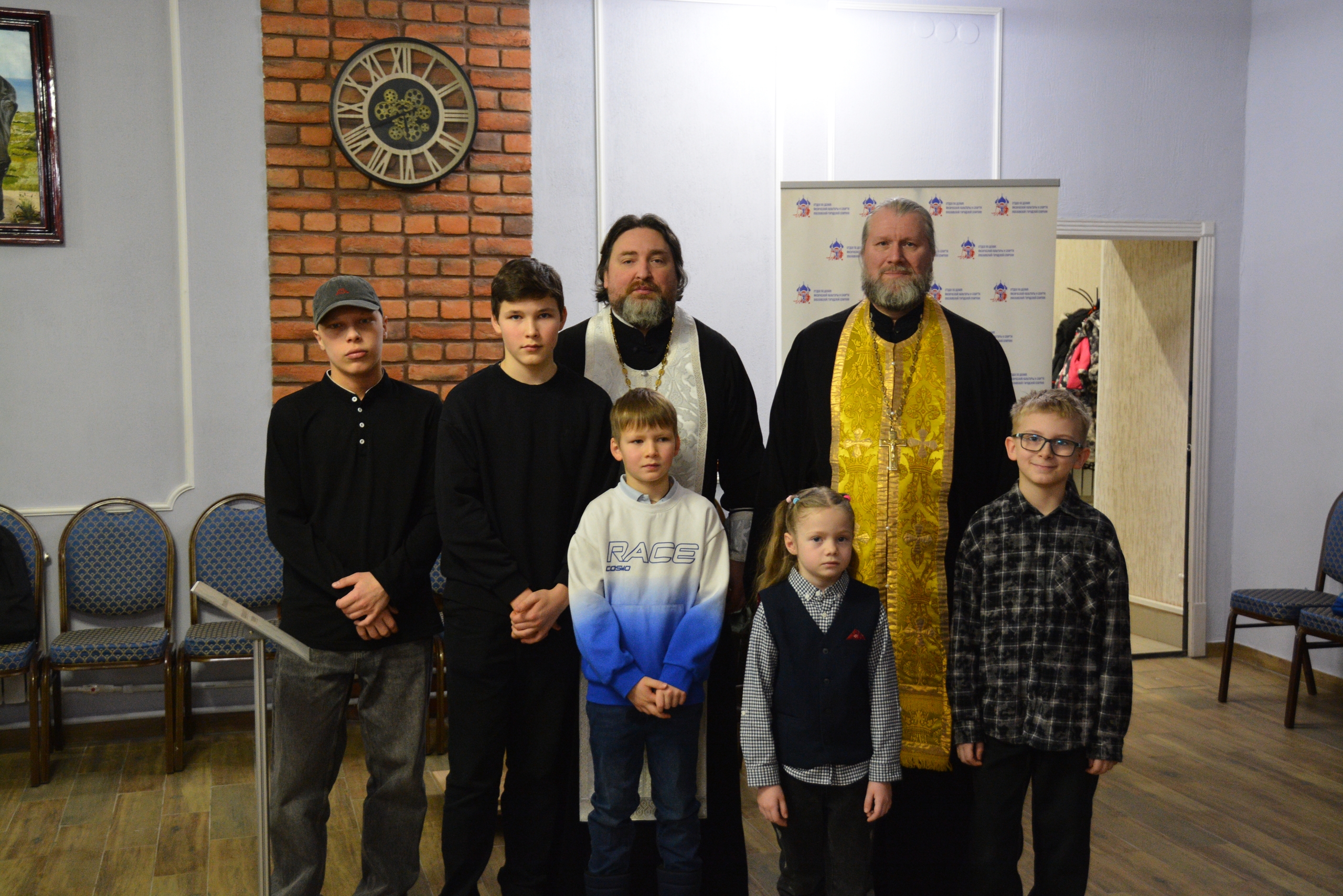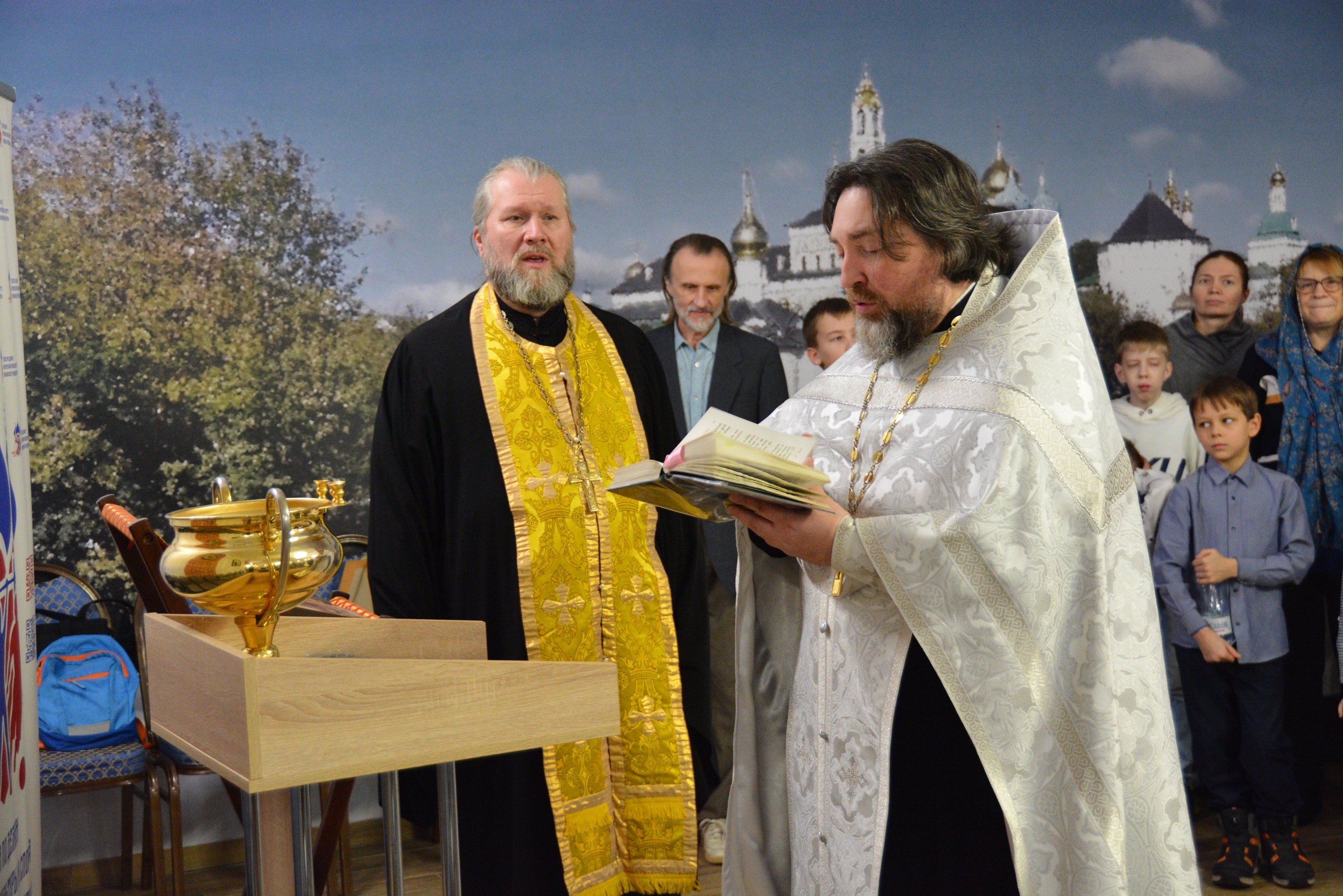 Перед началом финального этапа председатель Отдела иерей Павел Симонов и ответственный за деятельность воскресных школ в Северо-Восточном викариатстве иерей Андрей Родионов совершили водосвятный молебен, на котором участники и их близкие совместно пели слова молитвы, испрашивая Божиего благословения.