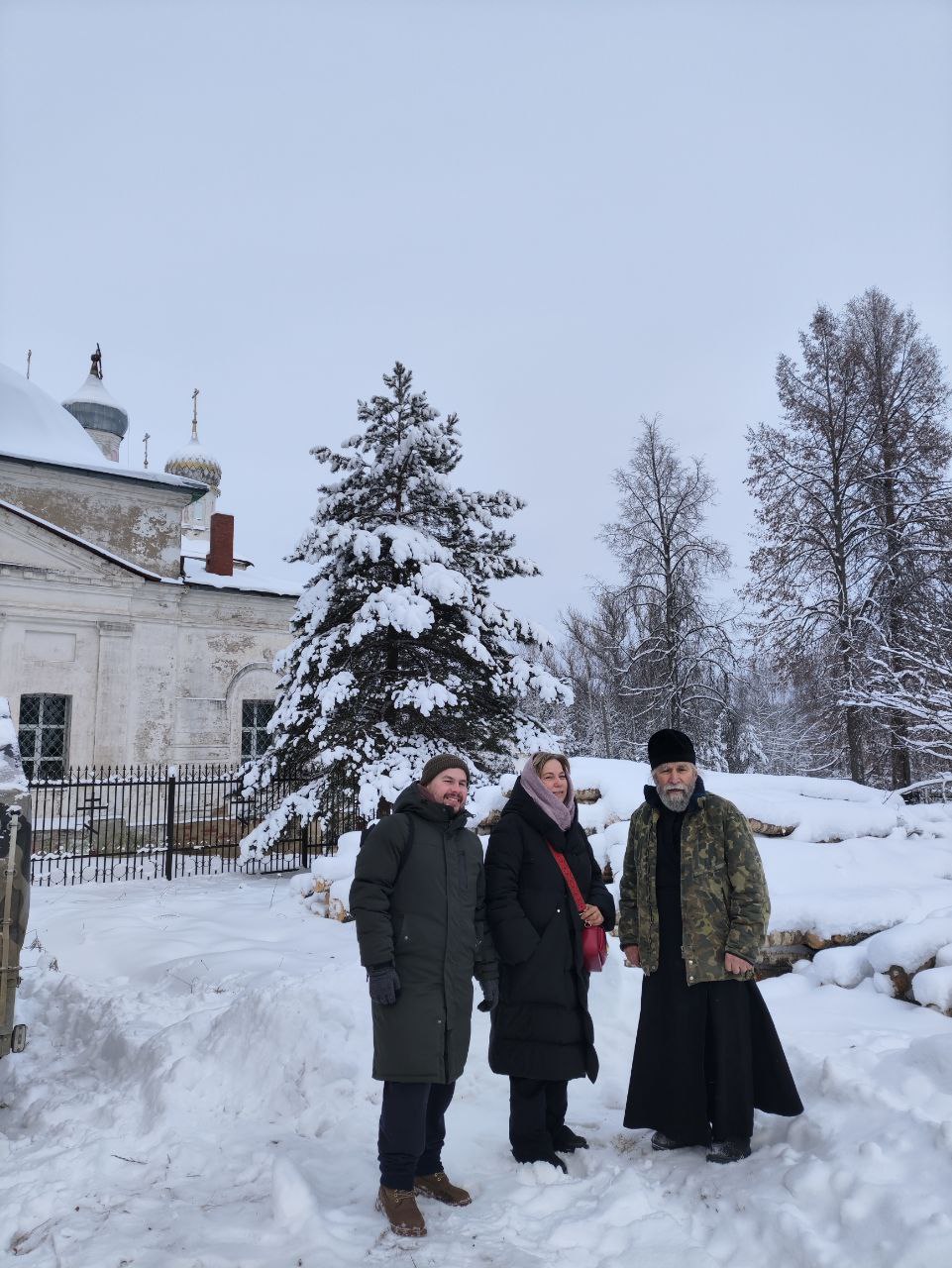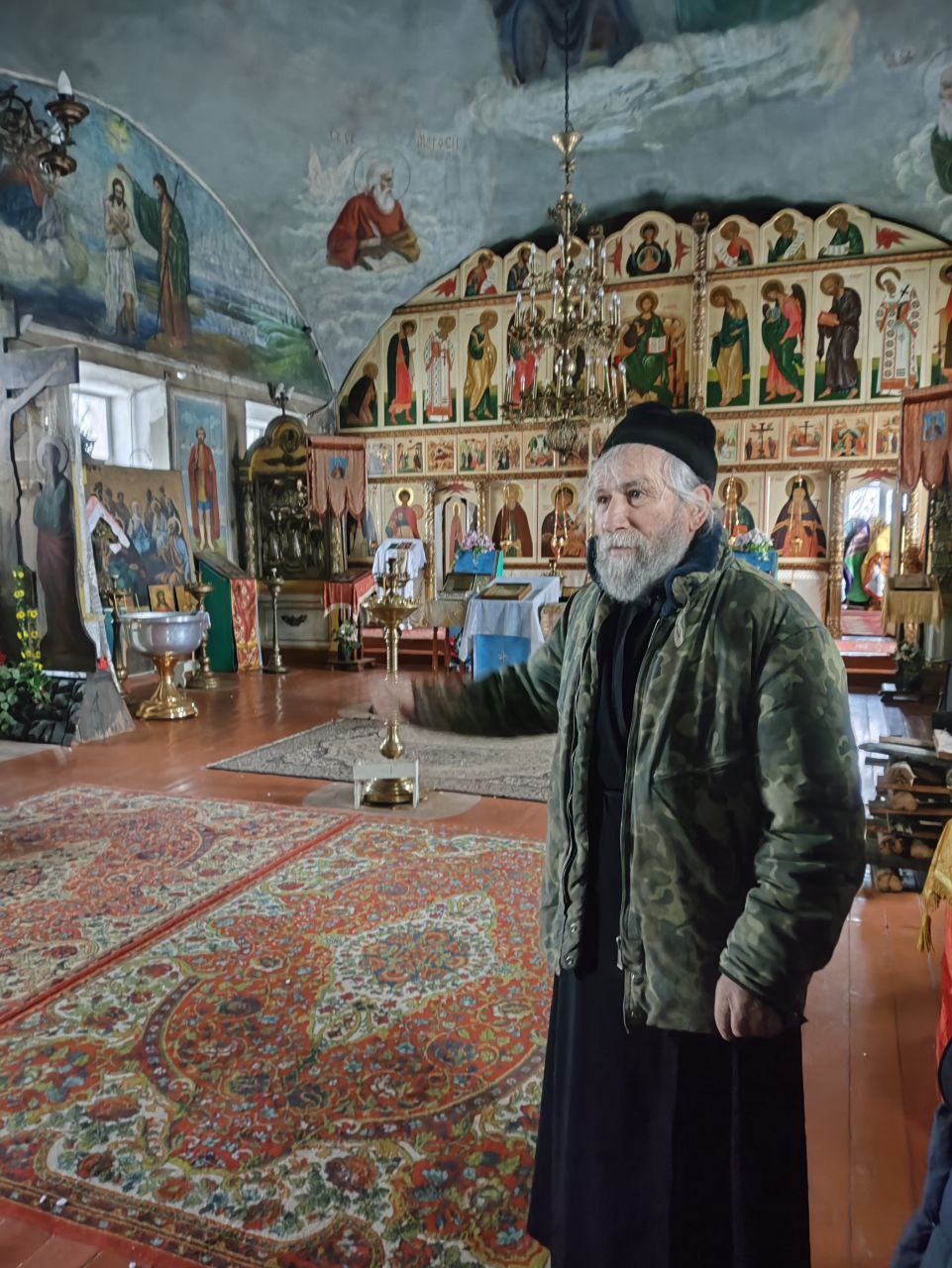 Конечной точкой маршрута стал храм Дмитрия Солунского — памятник церковной архитектуры с богатой историей. Каменная церковь была возведена здесь в 1801 году, сменив прежнюю деревянную. Настоятель, иерей Николай Строгатяну, встретил гостей и провел экскурсию. Он показал летний храм в честь Дмитрия Солунского, зимнюю церковь Митрофания Воронежского (требующую отдельного протапливания перед службами), а также дом причта и колокольню.