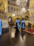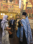 Возглавил молебен иеромонах Онисим( Бамблевский) — председатель отдела религиозного образования и катехизации Московской городской епархии, в сослужении клирика храма святых мучеников Адриана и Наталии в Бабушкине священника Феодора Сидорова, который преподает в Институте Славянской культуры Основы Православной культуры студентам первого курса.