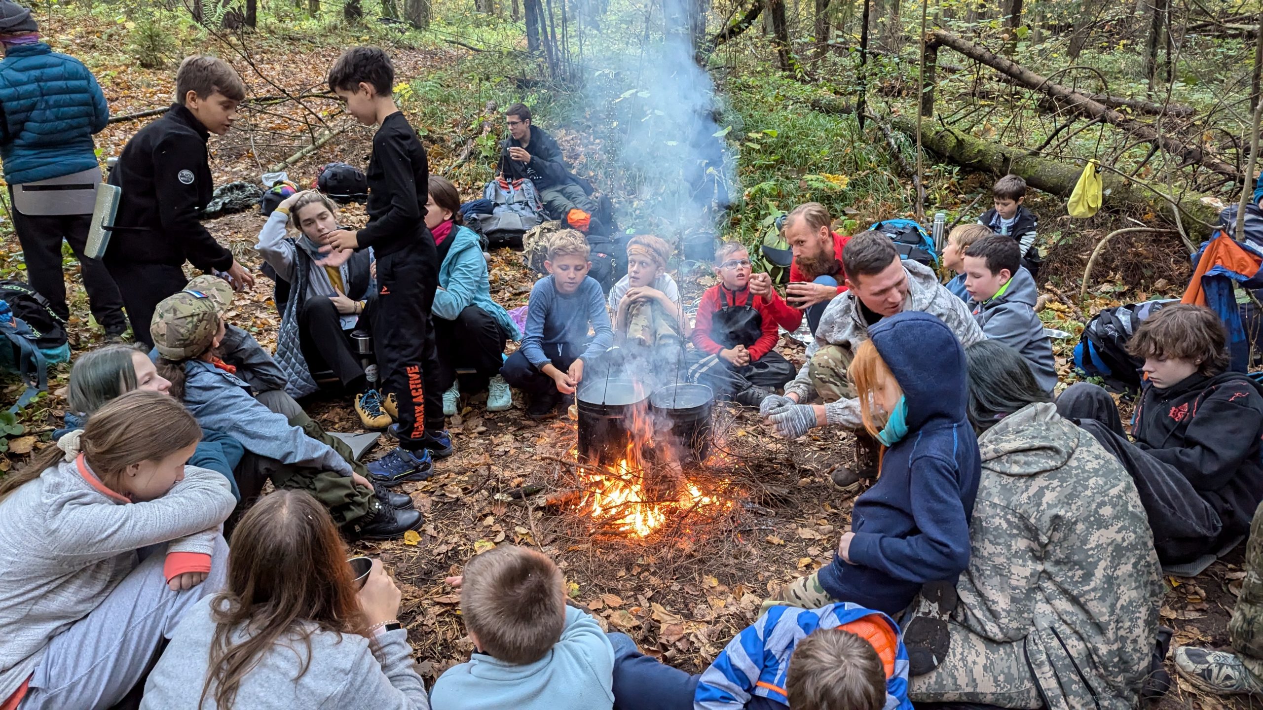Провели учебно-тренировочный поход под Звенигородом, в рамках которого на большой поляне у лесного родника юные туристы в малых группах учились самостоятельно разводить и поддерживать костер в условиях межсезонья. Это было непросто и не у всех всё получилось сразу. Дети пробовали разные способы разведения огня, подбирали растопку и меняли виды костров пока все не добились ярко горящего результата.