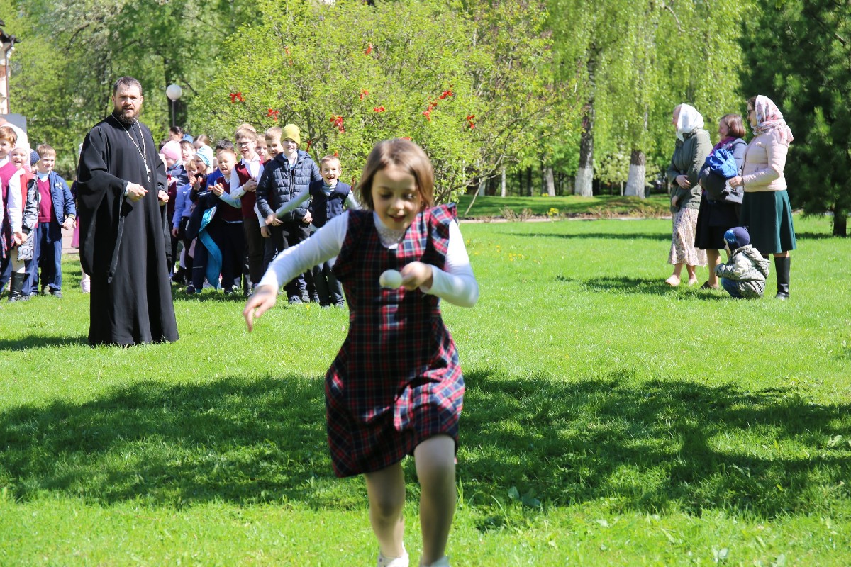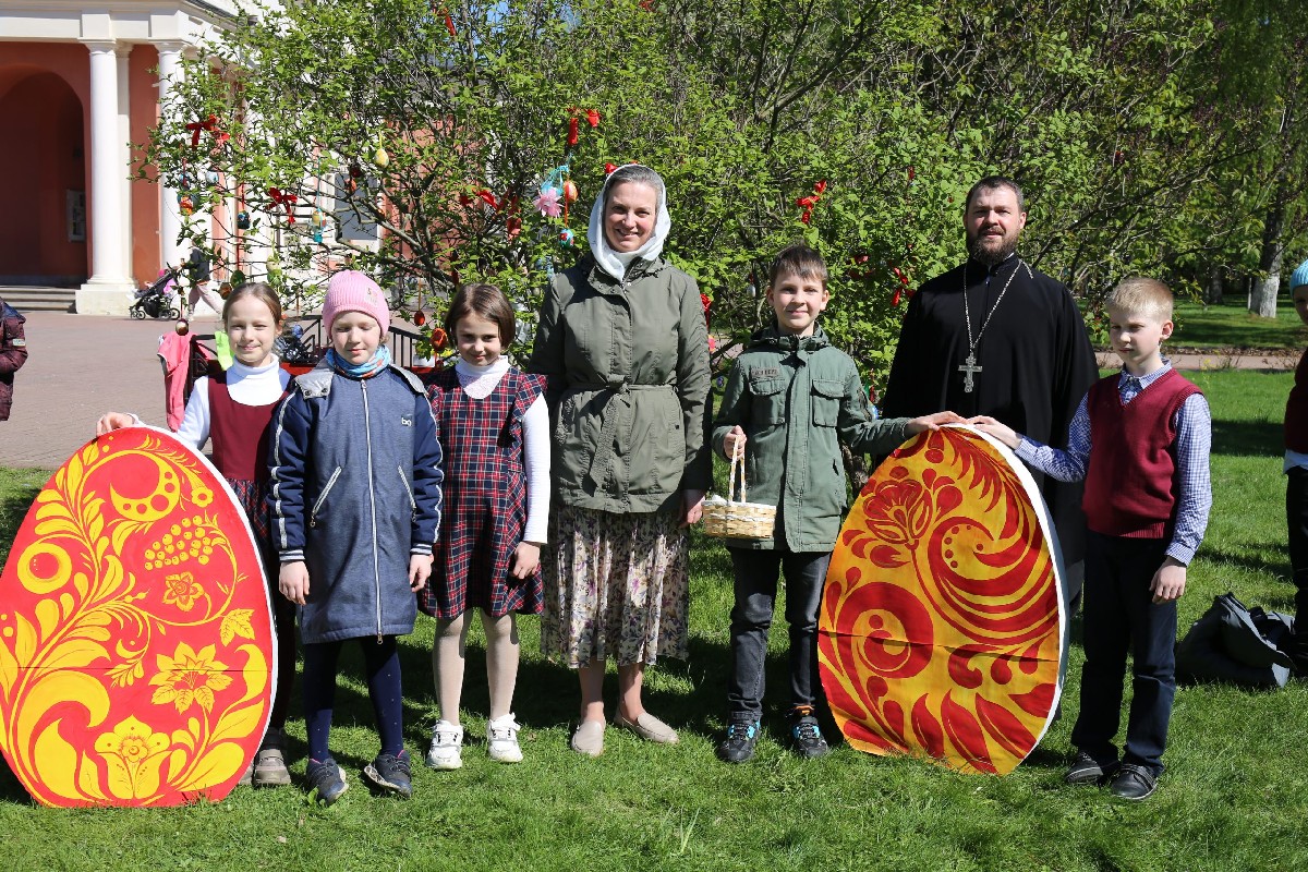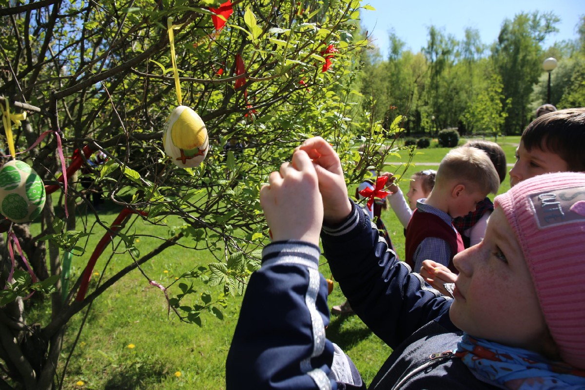 По традиции перед украшением дерева дети пропели тропарь Пасхи, поиграли в подвижные игры и поразгадывали загадки.