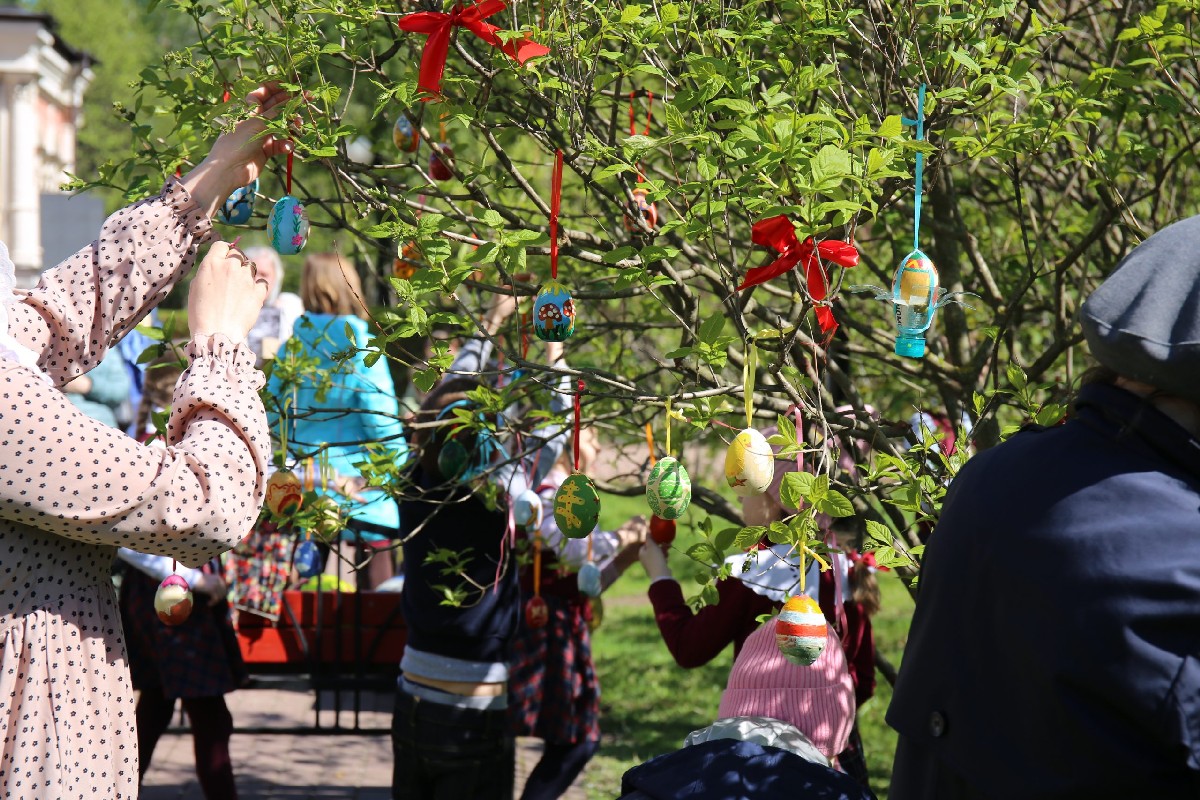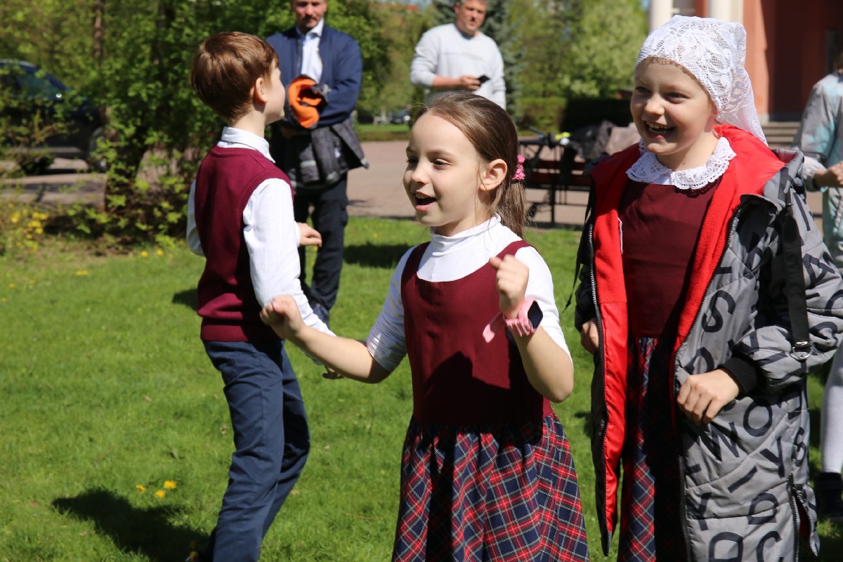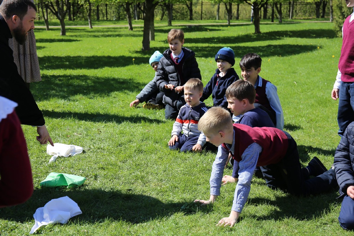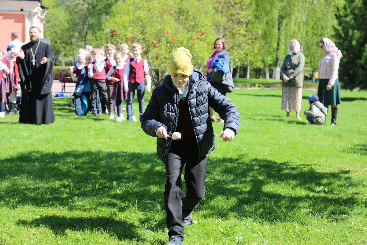 По традиции перед украшением дерева дети пропели тропарь Пасхи, поиграли в подвижные игры и поразгадывали загадки.