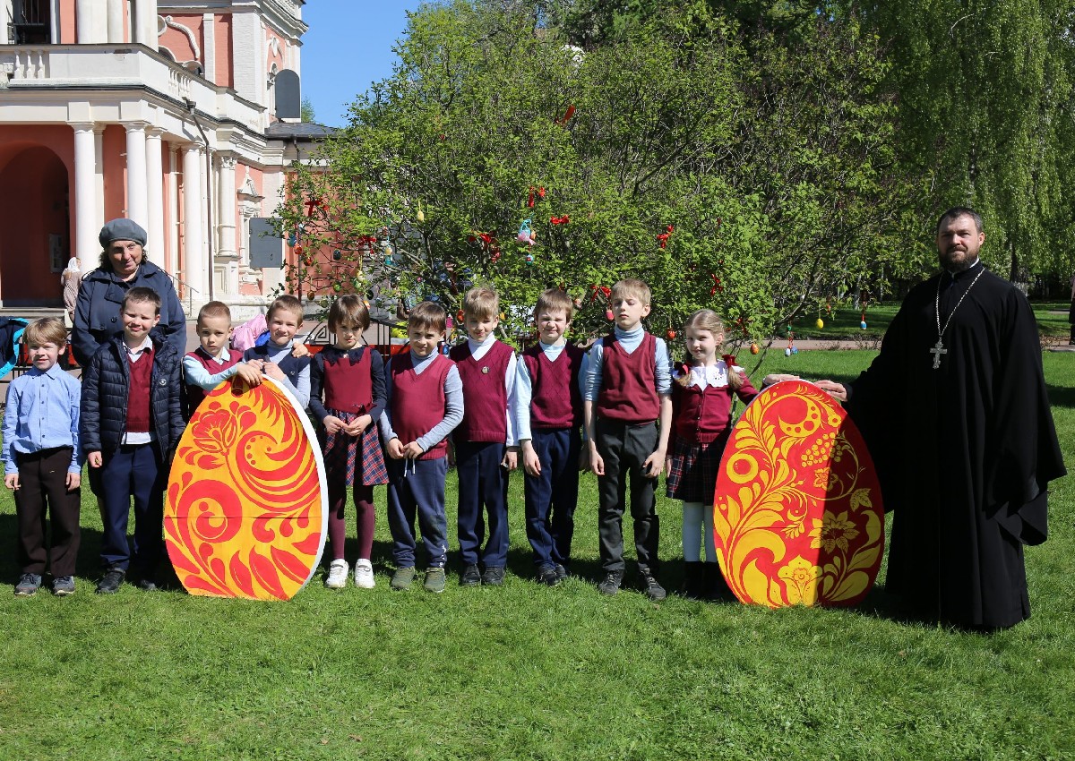 2 мая 2023 года, в память о величайшем православном празднике праздников, торжестве торжеств – Пасхе Христовой, под руководством клирика храма Живоначальной Троицы в усадьбе Свиблово иерея Димитрия Горбика, классные руководители и дети 1-4 классов православной школы им. преподобного Сергия Радонежского в Свиблово, украсили «пасхальное дерево» яркими разноцветными пасхальными сувенирами, над созданием которых трудились накануне Светлого Христова Воскресения.