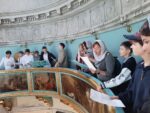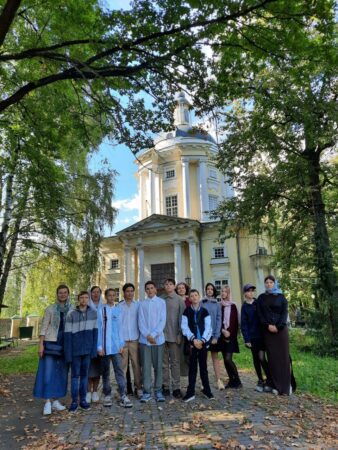 Экскурсовод храма Елена Романова рассказала детям об истории храма, его чудотворных иконах и о том, что во время Великой Отечественной войны в храме хранилась глава преподобного Сергия Радонежского. Дети с преподавателем спели тропарь преподобному Сергию у его иконы, а затем поднялись на клирос и спели тропарь Владимирской иконе Божией Матери.