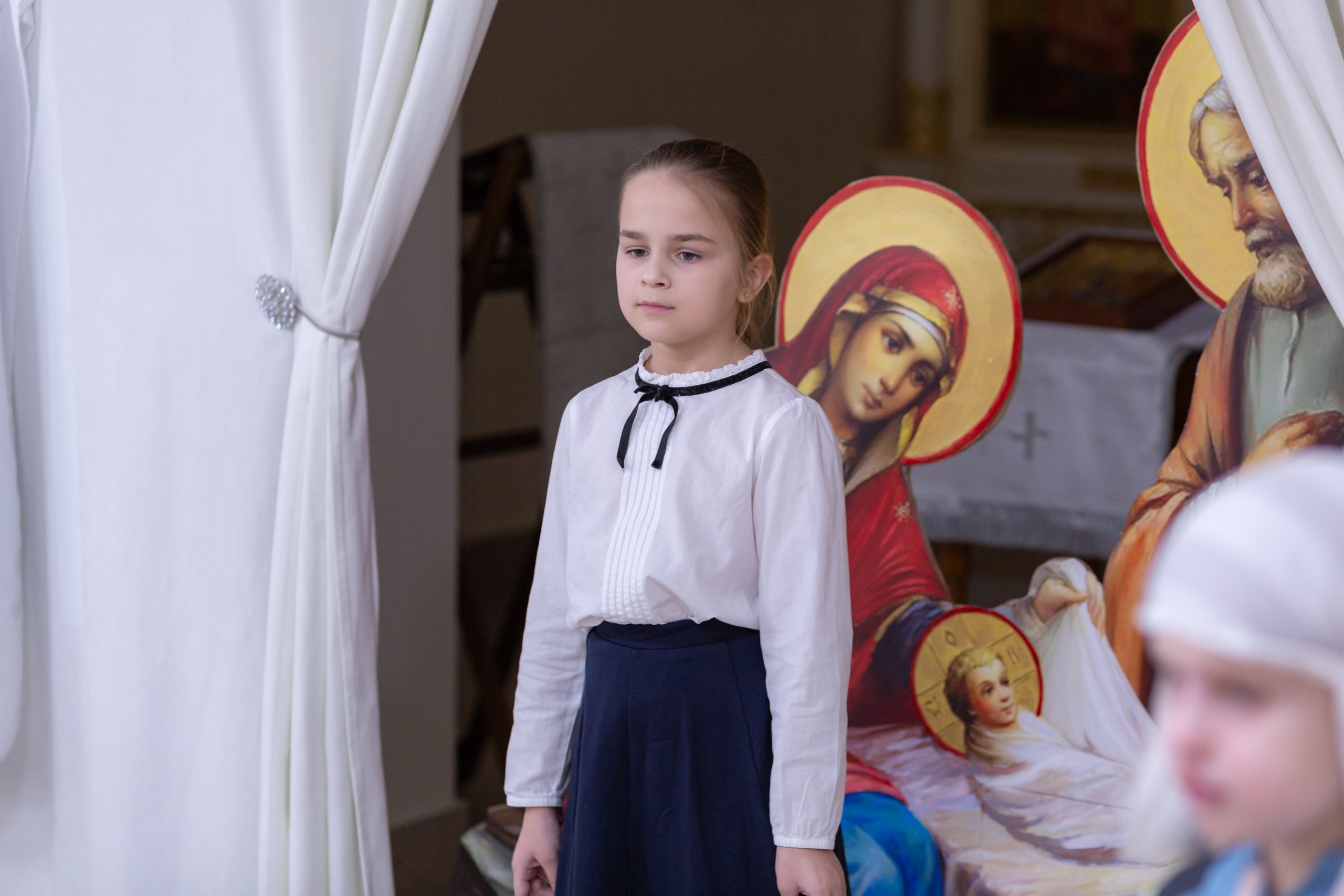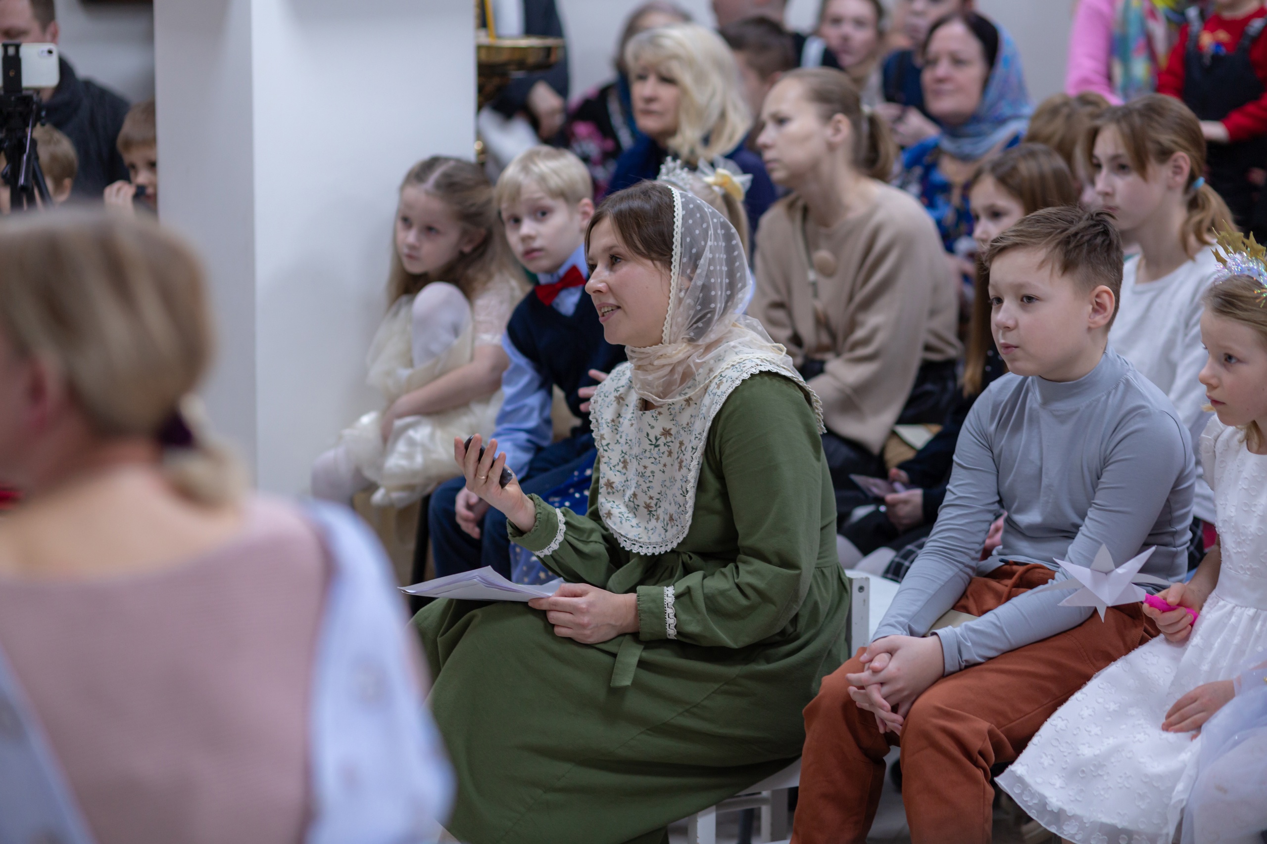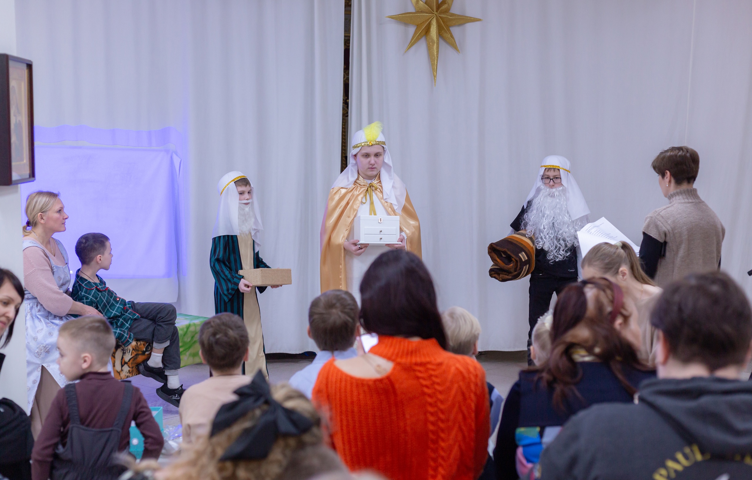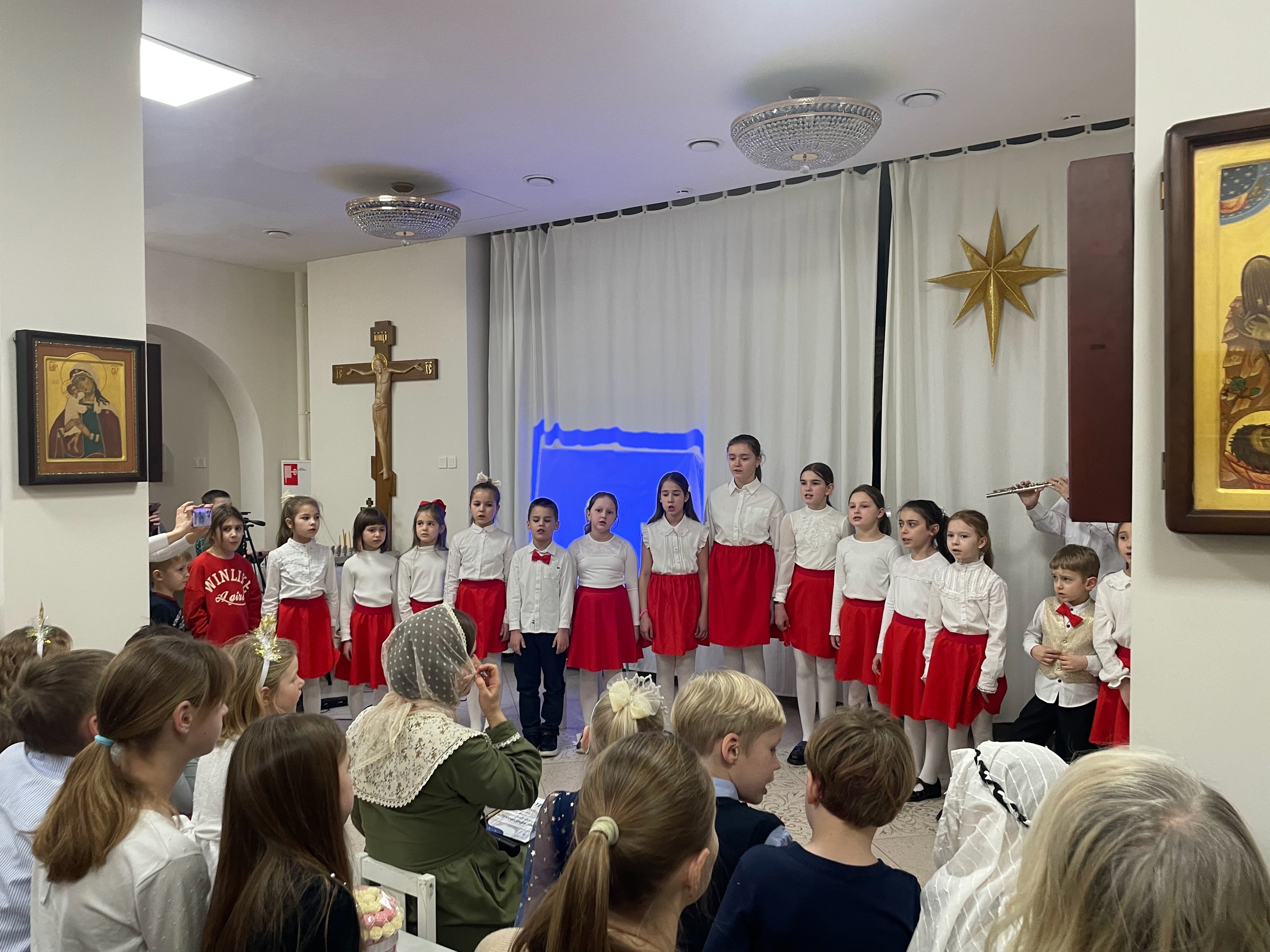 12 января 2025 года на нижнем этаже храма святых равноапостольных Мефодия и Кирилла в Ростокине состоялся праздничный детский концерт. По сложившейся традиции дети показали рождественский спектакль, спели колядки, прочитали стихи.