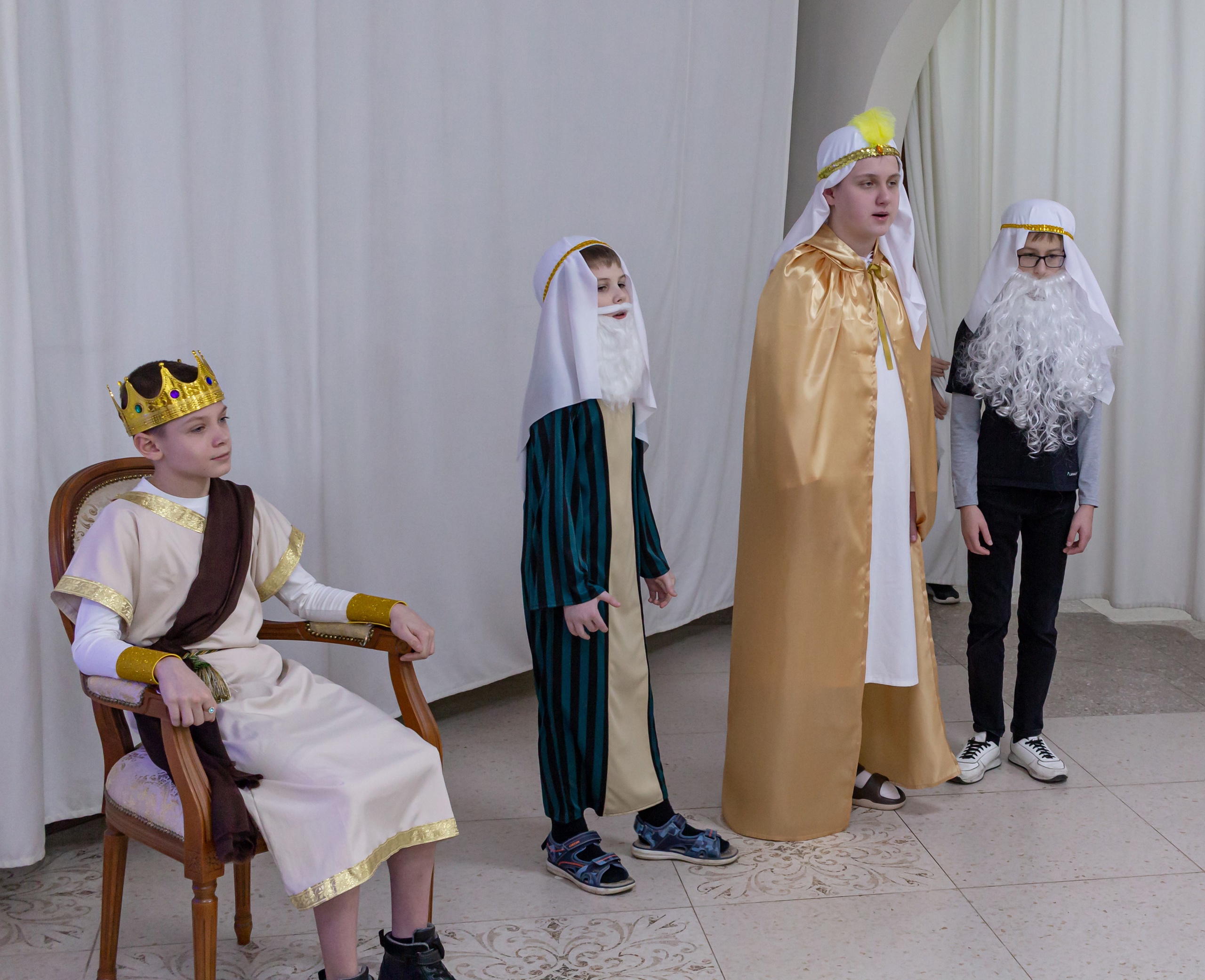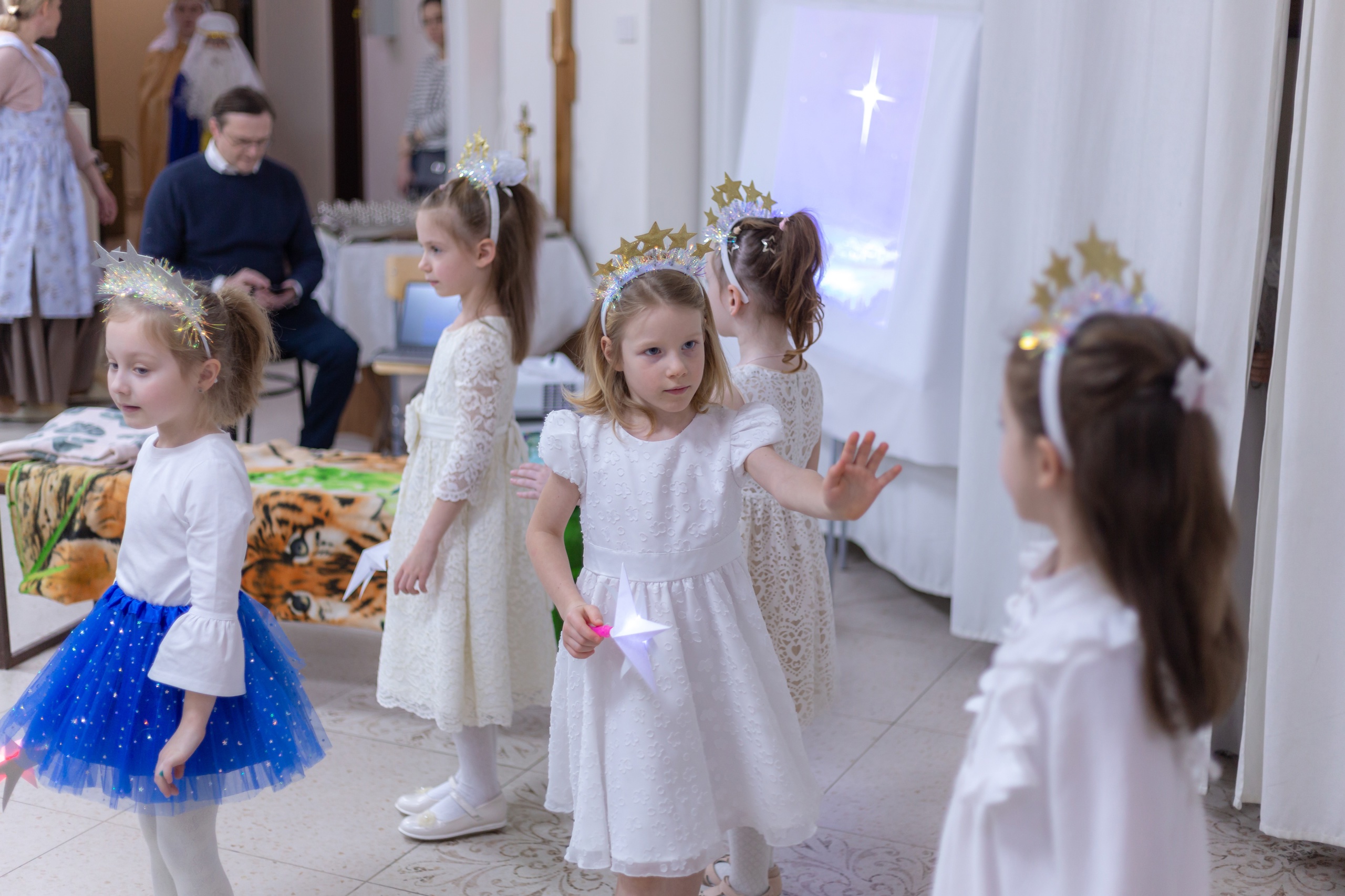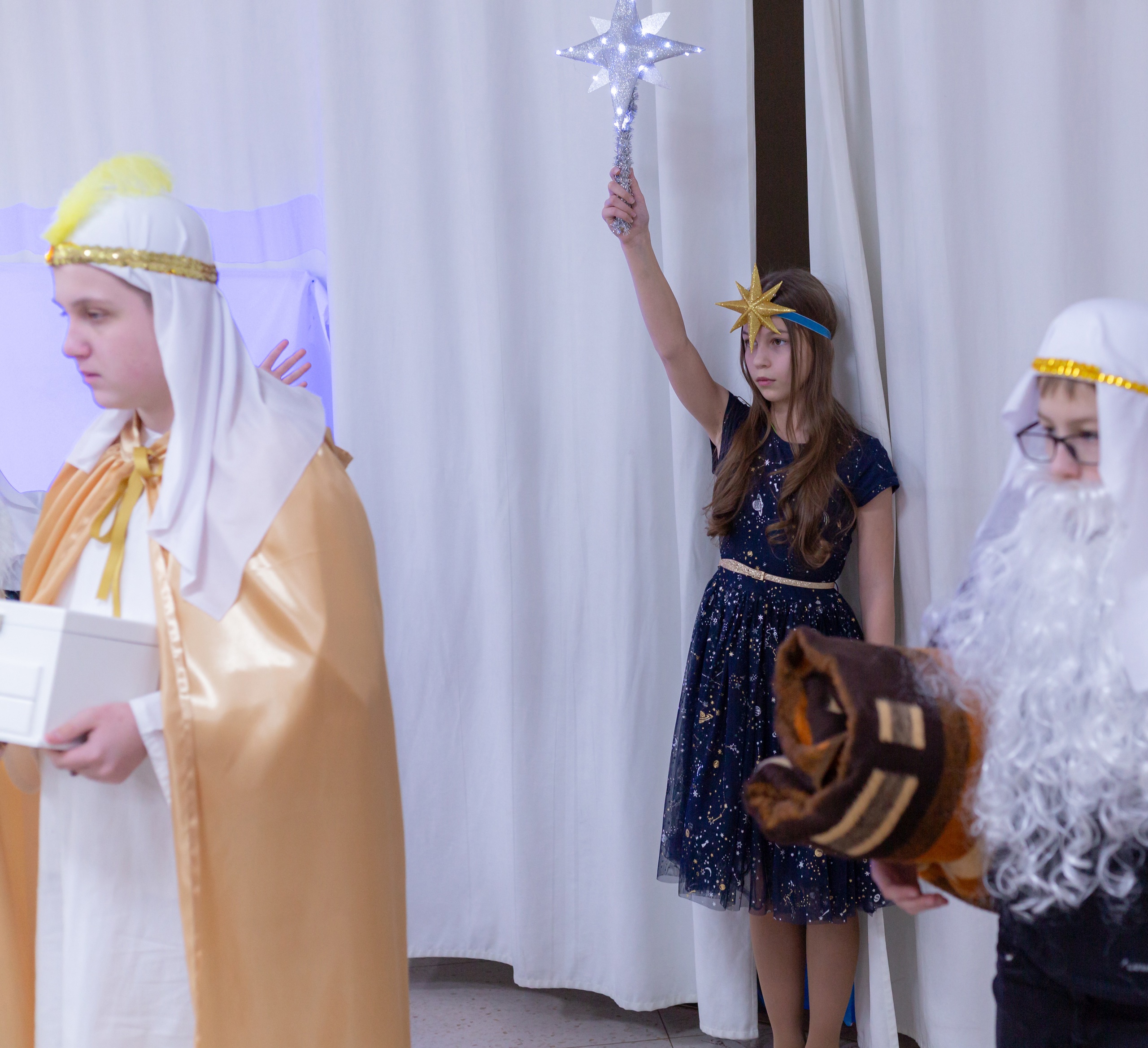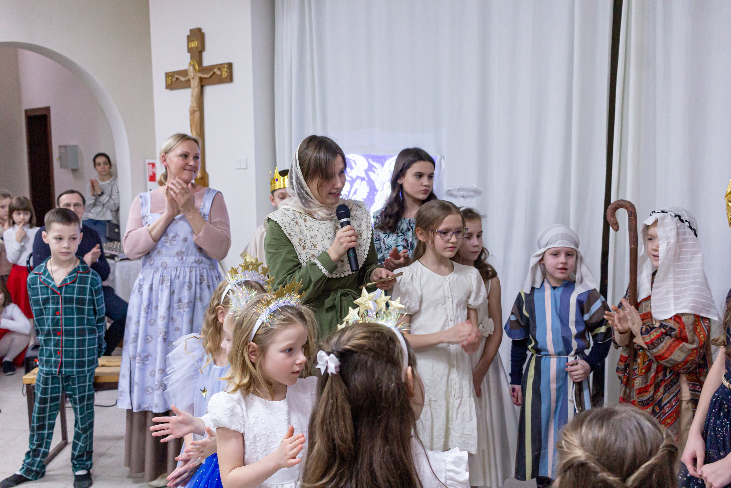 12 января 2025 года на нижнем этаже храма святых равноапостольных Мефодия и Кирилла в Ростокине состоялся праздничный детский концерт. По сложившейся традиции дети показали рождественский спектакль, спели колядки, прочитали стихи.